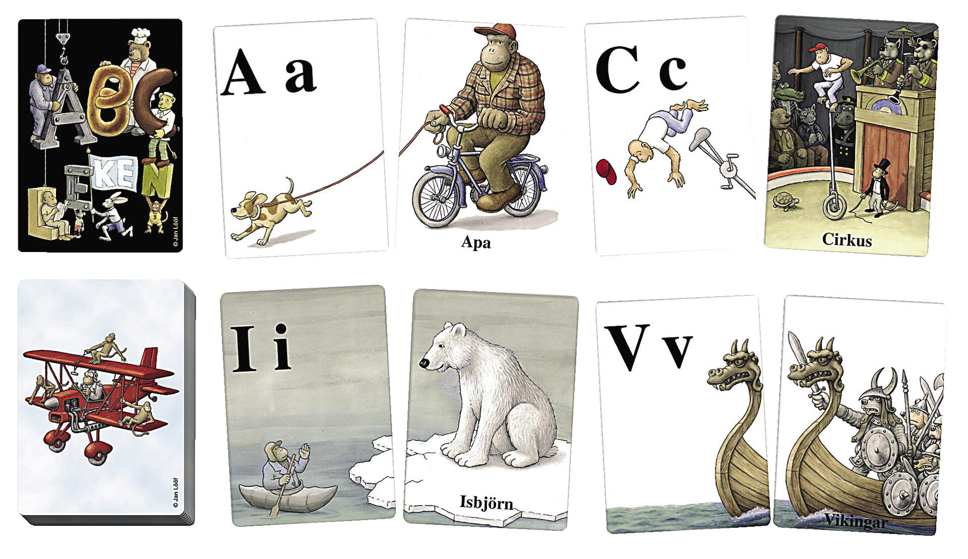 Ett annorlunda alfabetskortspel som bygger på bilder från Janne Lööfs ABC bok. Du kan samla par eller spela det som ett kom ihåg spel. Innehåller 56 st spelkort och 1 regelkort. PVC-fri. Från 5 år.