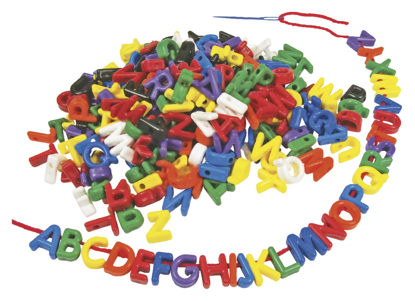 750 st/fp. Runda alfabetspärlor A-Z. Svarta bokstäver på pastellfärgad botten. Bokstäverna är nedsänkta i pärlan vilket gör att färgen håller längre. ø 7,5 mm. Håldiameter 1,3 mm. Av PS. PVC-fri. Från 3 år.