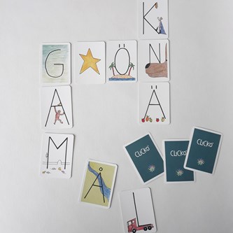 55 st/fp. En ABC-kortlek med bilder på alfabetets alla bokstäver byggda med Clickos trädelar. A-Ö inklusive W, Æ och Ø. Med denna ABC-kortlek kan ni bekanta er med bokstävernas form och öva bokstavsljud. Låt barnen vara en del av lekprocessen och hitta på olika sätt att leka och spela med materialet. Utan regler och färdiga instruktioner. Innehåller: 55 spelkort varav 31 med bokstäver, 4 monster och 20 med stjärnor. PVC-fri.