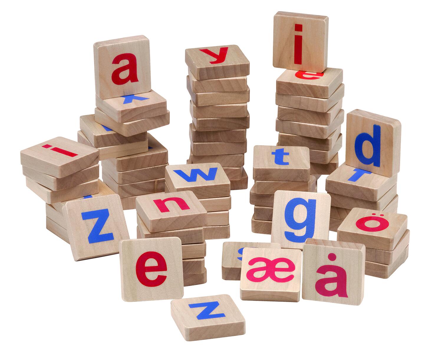 67 st/fp. Magnetiska träbrickor med tryckta bokstäver, gemener. Fördelade i vokaler och konsonanter i olika färger. Avsett för lärarledd undervisninig. Inklusive förvaringspåse. Mått: 3,3x3,3x0,7 cm. PVC-fri. Från 3 år.