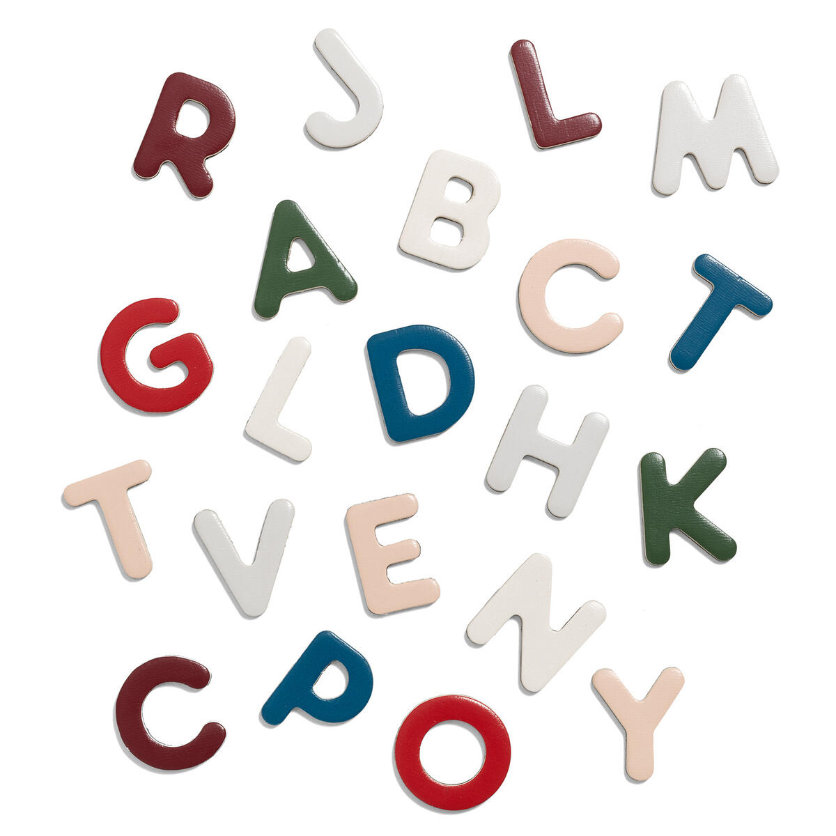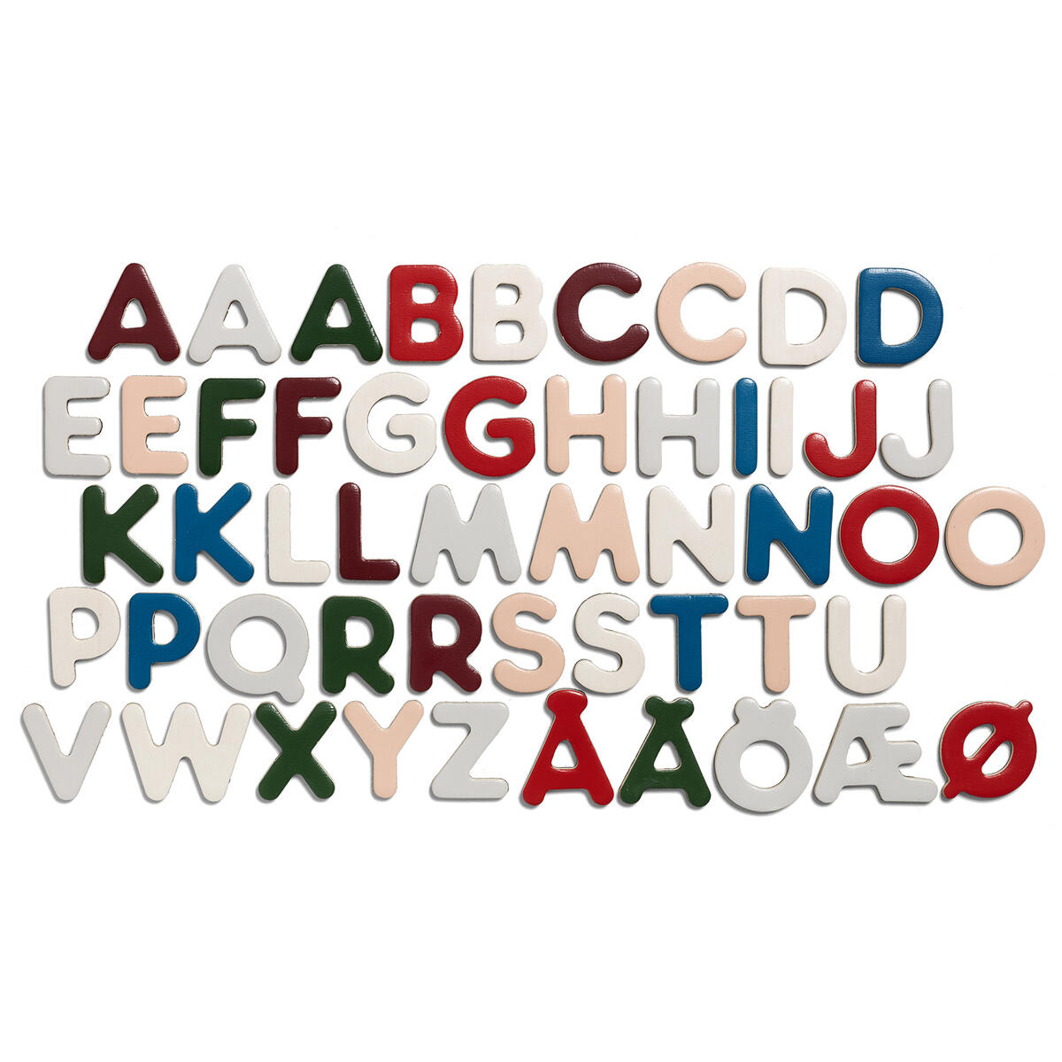 Genom att leka med bokstäver och bygga ihop namn och ord lär barnen känna bokstävernas former och kan öva sig på uttal och stavning. Blandade färger och mönster på bokstäverna. 51 bokstäver med de nordiska alfabeten. Höjd 30 mm, bredd varierar per bokstav. Av FSC-trä och magnet. PVC-fri. Från 3 år.