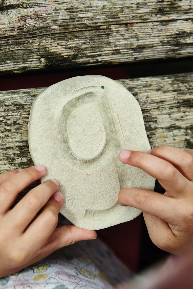 En uppsättning av stenar med siffrorna 0-9 försänkta i stenarna. Ger både en taktil och en visuell upplevelse för att öva siffror. Börja på den gröna punkten och styr sedan fingret längs med pilens riktning. Barnen bygger det viktiga motoriska minnet och utvecklar de grundläggande rörelserna som behövs för att skriva. Kan användas både inom-och utomhus. PVC-fri. Från 2 år.