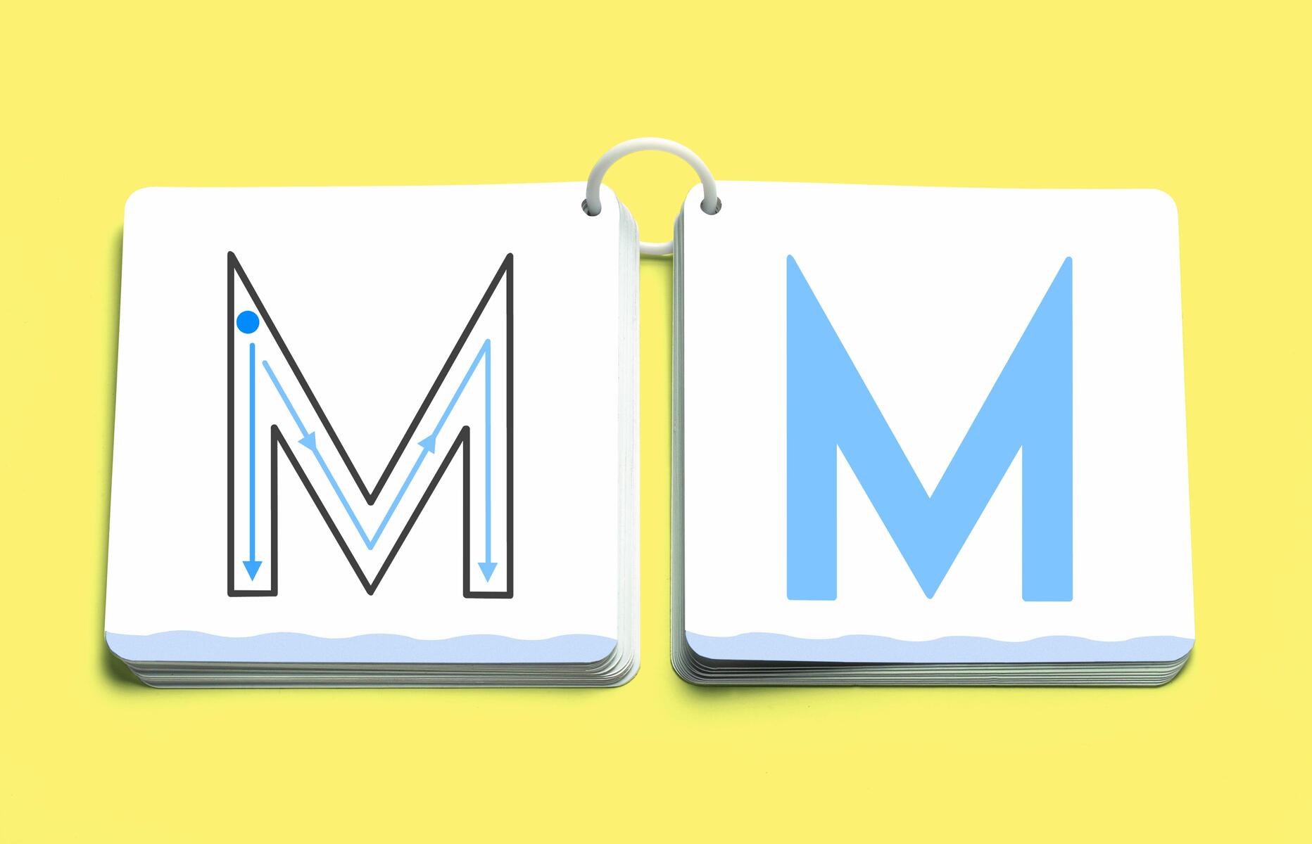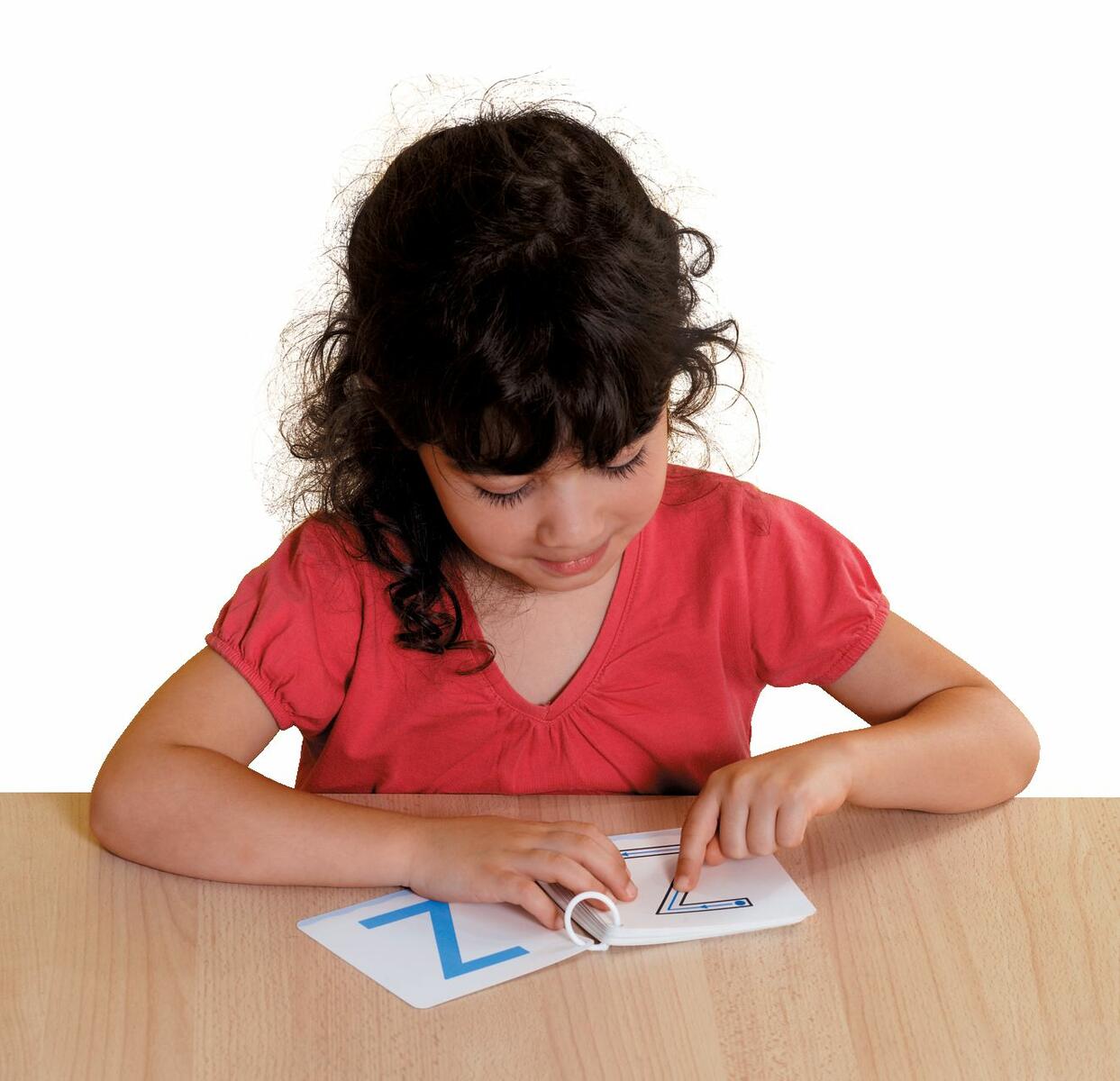 Spåra med fingertoppen utmed bokstavens pilar och lär dig skriva våra versaler på rätt sätt. 27 tåliga kort med bokstäverna A-Z inklusive W, storlek 10x10 cm, hålls samman med en plastring. Innehåller 2 set med kort.