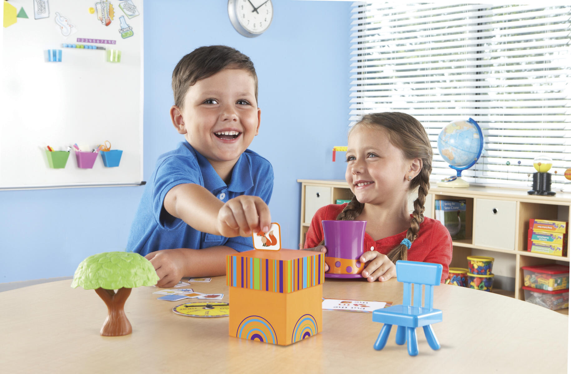 Engelska prepositioner och rim på ett roligt sätt! Fungerar lika bra i grupp som enskilt. Innehåller 4 saker (tree, box, chair and hat), 16 bildkort, 40 dubbelsidiga aktivitetskort, spinner och en aktivitetsguide. PVC-fri.