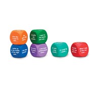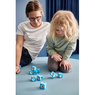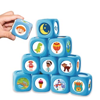 6 st. Mjuka, språkutvecklande tärningar med 36 olika motiv, t.ex. hus, clown, brasa, brev, tåg och katt. 2 av tärningarna visar olika karaktärer, 2 visar situationer/platser och 2 av dem visar en tänkt bakgrund/händelse. När tärningarna kombineras har man alla element man behöver för att starta en berättelse muntligt eller skriftligt. PVC-fri. Mått: 4x4 cm.