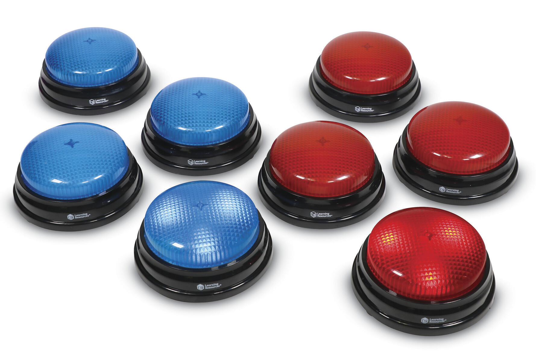 4 st/fp. Knappar som både lyser och låter och gör lektioner och lekar roligare. Kan också användas för att uppmärksamma att man behöver hjälp. Varje färg har ett unikt ljud. Mått: ca 9 cm. Kräver 2 st AAA-batterier (ingår ej). Från 3 år.