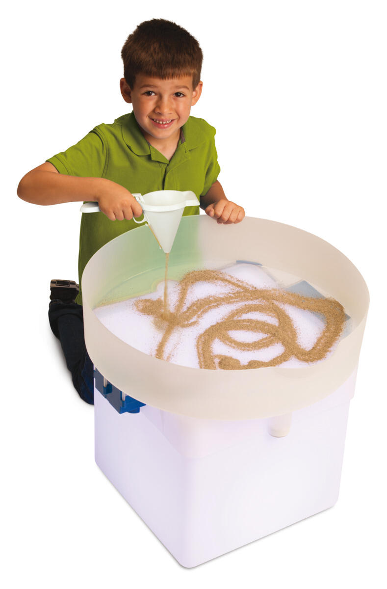 Multisensorisk bricka för att utveckla öga-handkoordinationen och att öva på att forma bokstäver och former. Innehåller bricka för sand, platta med en magnetisk whiteboard på ena sidan och griffeltavla på andra, 0,4 kg sand, en whiteboardpenna, tre griffelkritor, en sudd och ett verktyg för att platta ut sanden. Mått 30x30 cm. PVC-fri.