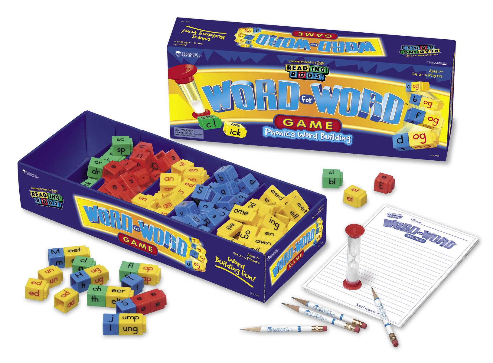 Bygg engelska ord snabbt genom att använda alla sidorna på kuberna inom två minuter. Tjäna poäng för varje rättstavat ord. Flest poäng vinner! Utvecklar elevernas stavningsteknik med ordfamiljer, ord, mellanslag och punkt. För 2-4 spelare. PVC-fri.