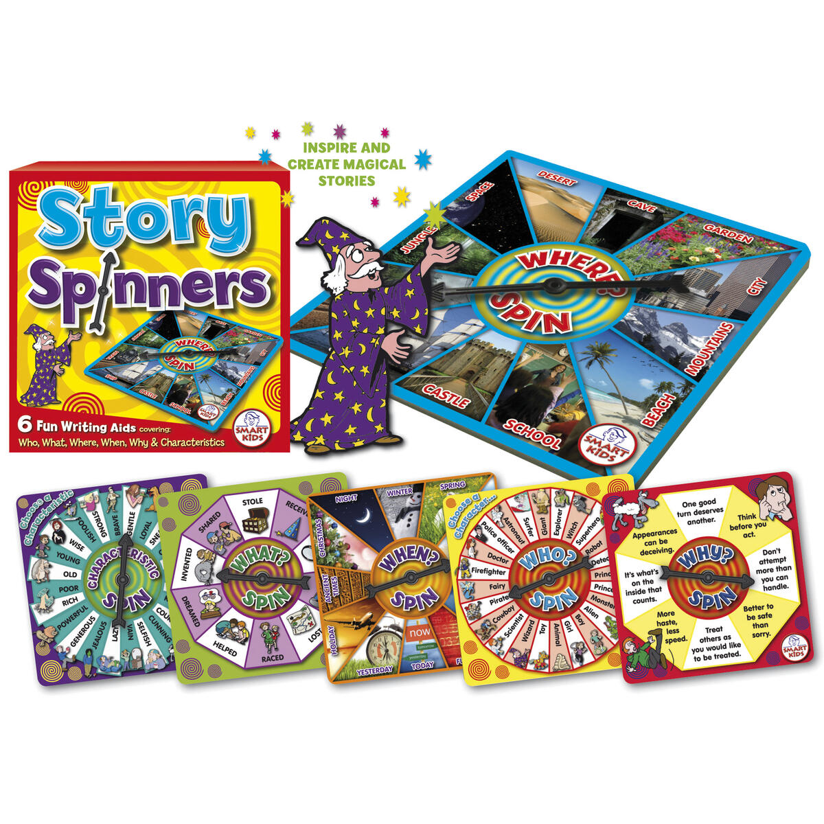 Inspirerar till att skapa kreativa berättelser. Varje spinner ger input om vem, vad, när och varför samt olika scenarier, karaktärer och tider. Låt sagoberättande börja!