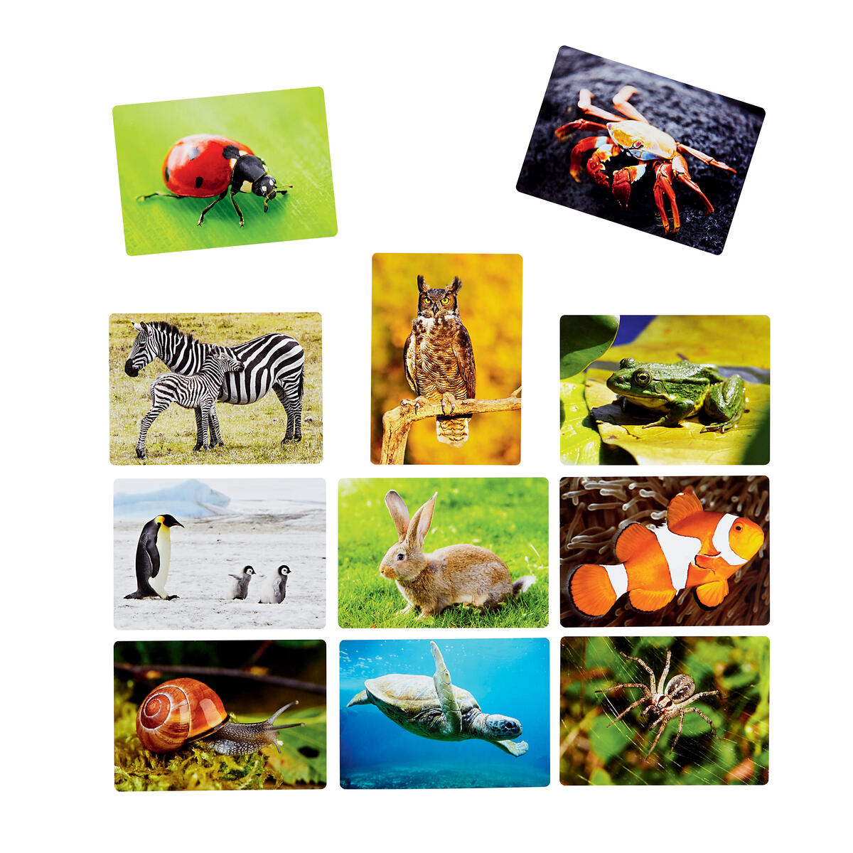 Stora språkutvecklande bildkort där man tränar på namn, begrepp och beskrivande ord på djur och deras miljö. Boxen innehåller 70 fotografiska bildkort samt en lärarhandledning. Från 3 år.