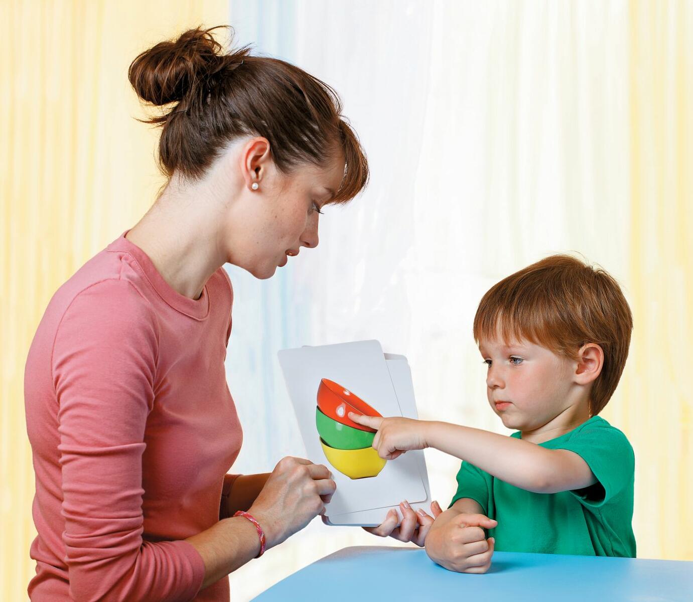 Barnen får här träning i att förklara och sätta ord på sina tankar. Meningen är att skapa situationer där de måste kommunicera med varandra genom att förklara bilden de har framför sig. T.ex. "Jag letar efter en brun apa som har en gul boll framför sig". Upp till fyra deltagare. PVC-fri. Från 4 år.