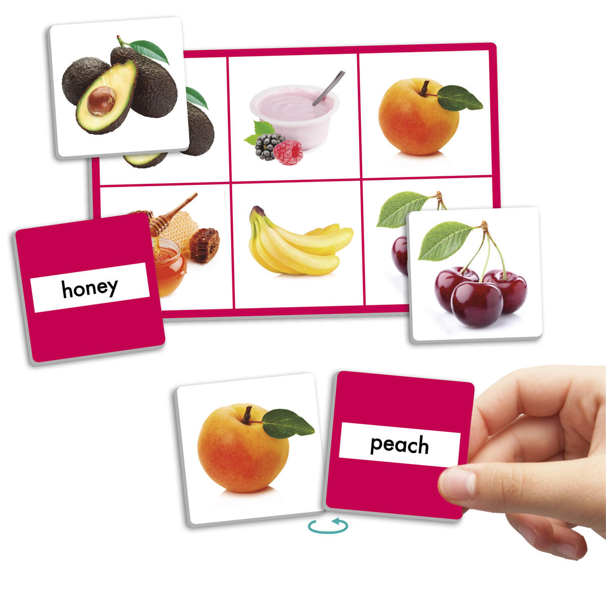 Språkutvecklande kortspel där barnen ska samla 6 kort som alla tillhör samma kategori. Innehåller 8 olika kategorier, t.ex. klädesplagg, verktyg och i köket. Innehåller 48 kort. PVC-fri. Lagom från ca 4 år.