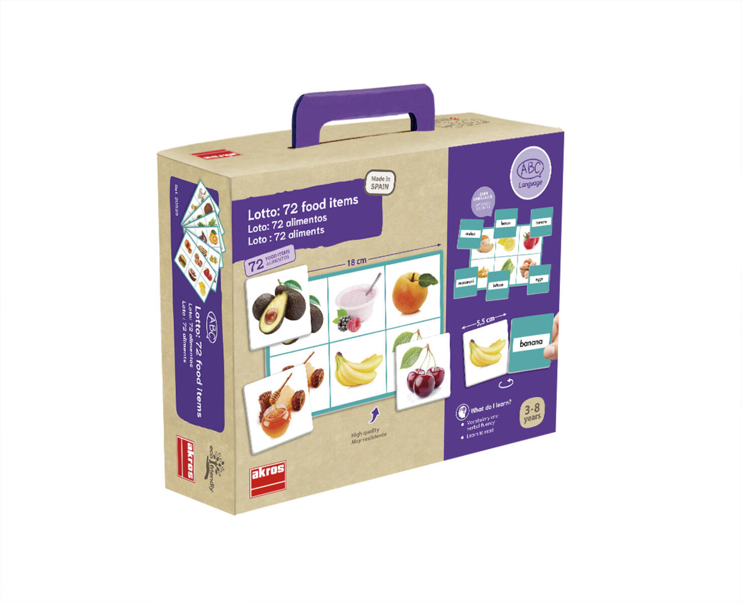 Försök hitta en bricka som finns på din lottobricka. Den som fyller sin lottobricka vinner. Lär barnen räkna genom att matcha rätt siffra med rätt antal frukter. För 2-4 spelare. Speltid ca 15 minuter. Av FSC-märkt kartong och papper. PVC-fri. Från 3 år.