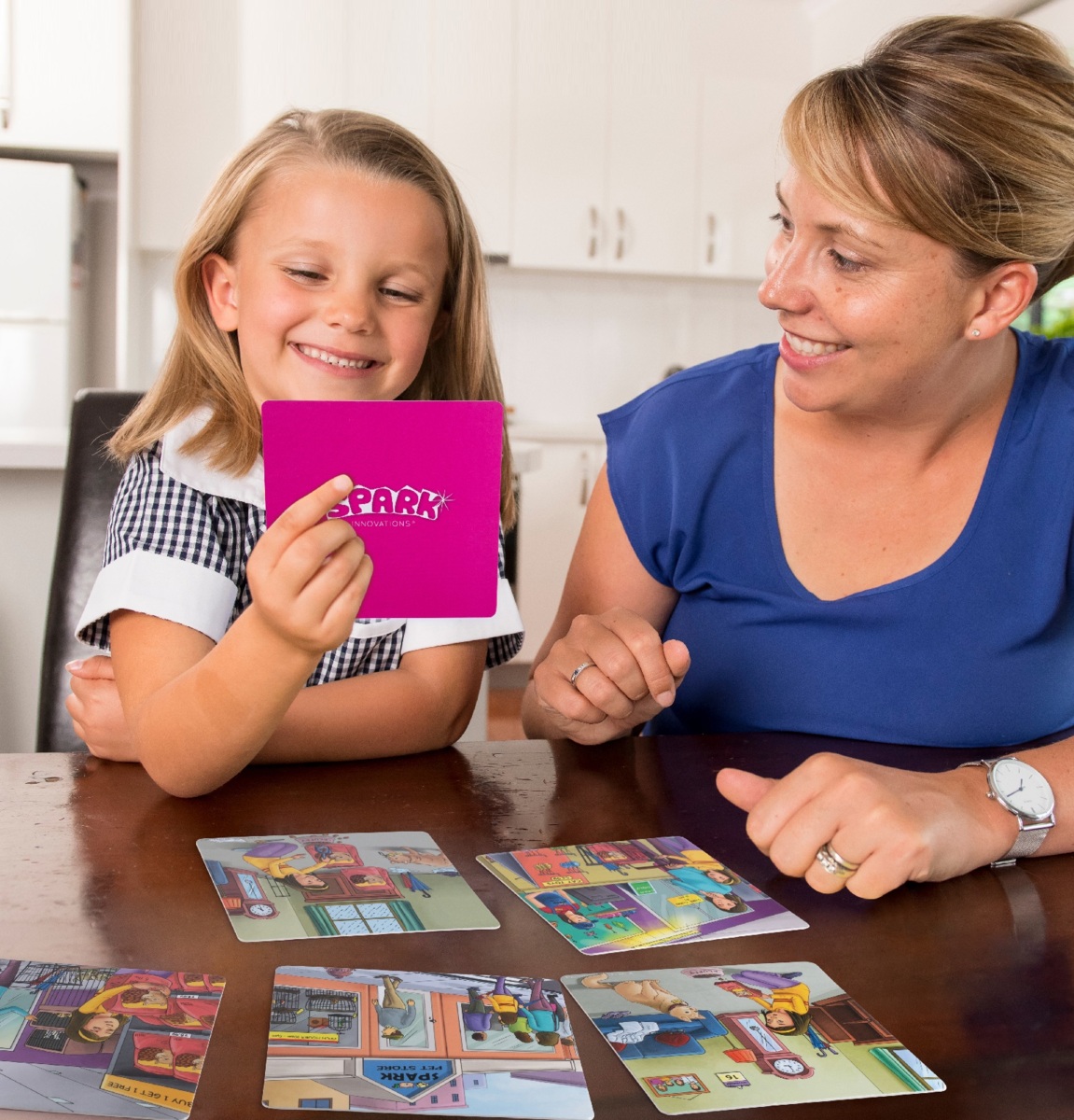 48 kort. Sekvenskort som sätter igång berättande och fantasi. 8 berättelser med 6 kort i varje sekvens. Berättelserna är Förberedning för oväder, Läskförsäljning, Hos veterinären, Spela fotboll, Till biblioteket, Att duka bordet, Plantera blommor och Åka till stranden. Öva på att artikulera och göra olika ljud, öka ordförrådet och känn igen strukturen i en berättelse. En handledning medföljer på engelska. Från 3 år.