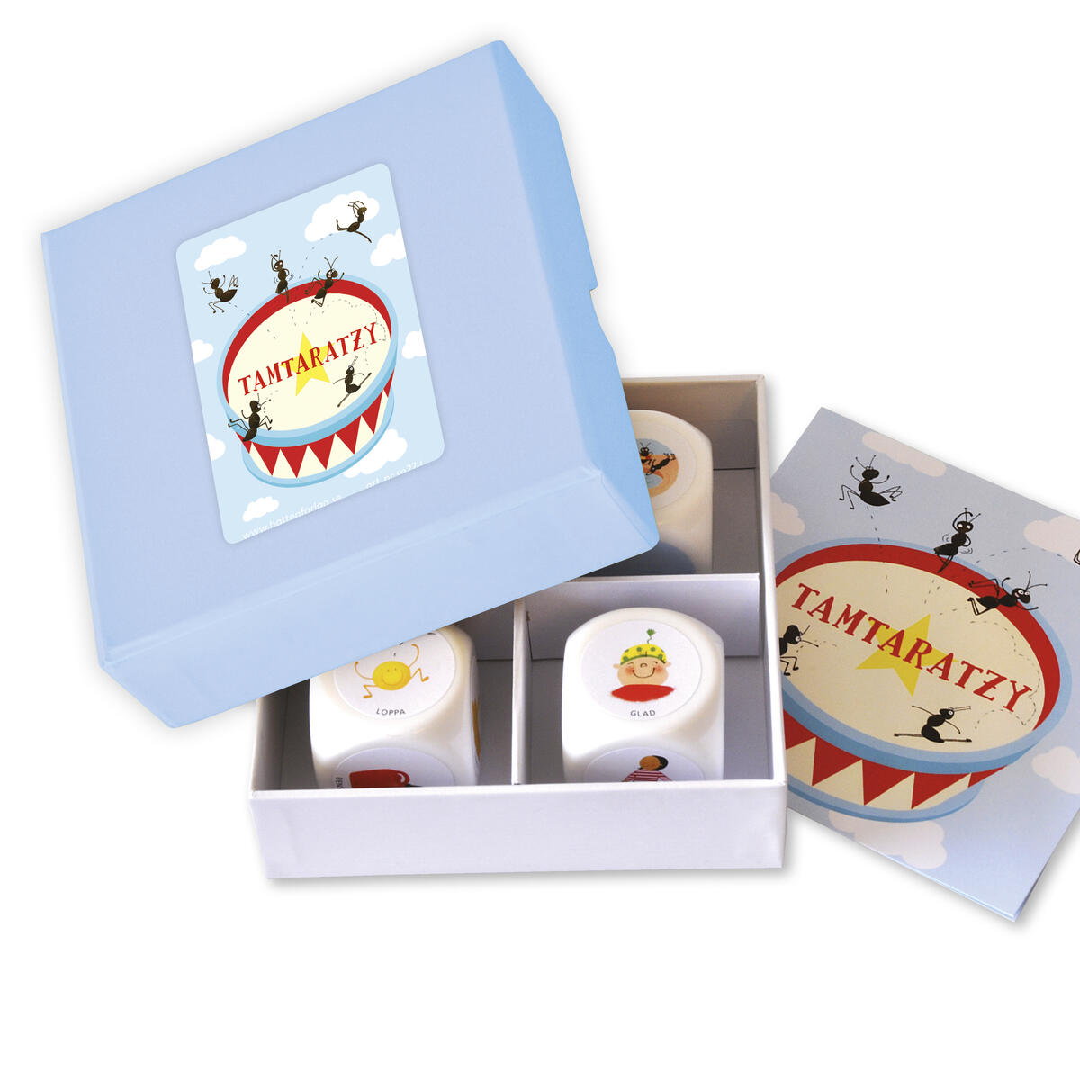 Ett lärorikt och roligt Yatzyspel för både stora och små! Slå tärningarna och samla på rimmande ord. Bilderna och orden är hämtade ur boken Tamtarams ur den språkstimulerande serien Snicksnacksnoken av Elvira Ashby och Karin Holmström, men spelet går även att använda fristående. Tärningarna är tunga och rejäla: 4x4 cm. Förpackade med en instruktionsfolder i en hållbar ask. PVC-fri.