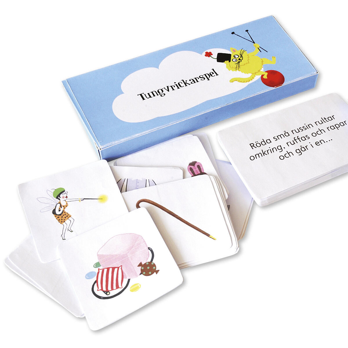 Ett lärorikt och roligt rim-spel med 33 kortpar att matcha. Perfekt för dig som vill stötta språklig medvetenhet och lägga grunden för läsinlärning! Textkorten har en mening som ska fyllas i med ett rim-ord från bildkorten. Bilderna och rimmen kommer ur "Tungvrickare", en bok i den språkstimulerande serien Snicksnacksnoken av Elvira Ashby och Karin Holmström, men spelet går att använda fristående. Bildkort: 7x7 cm. Textkort: 12x7 cm. Tryckt på tjock hållbar papp med rundade hörn. Förpackade i ask tillsammans med facit och instruktioner.