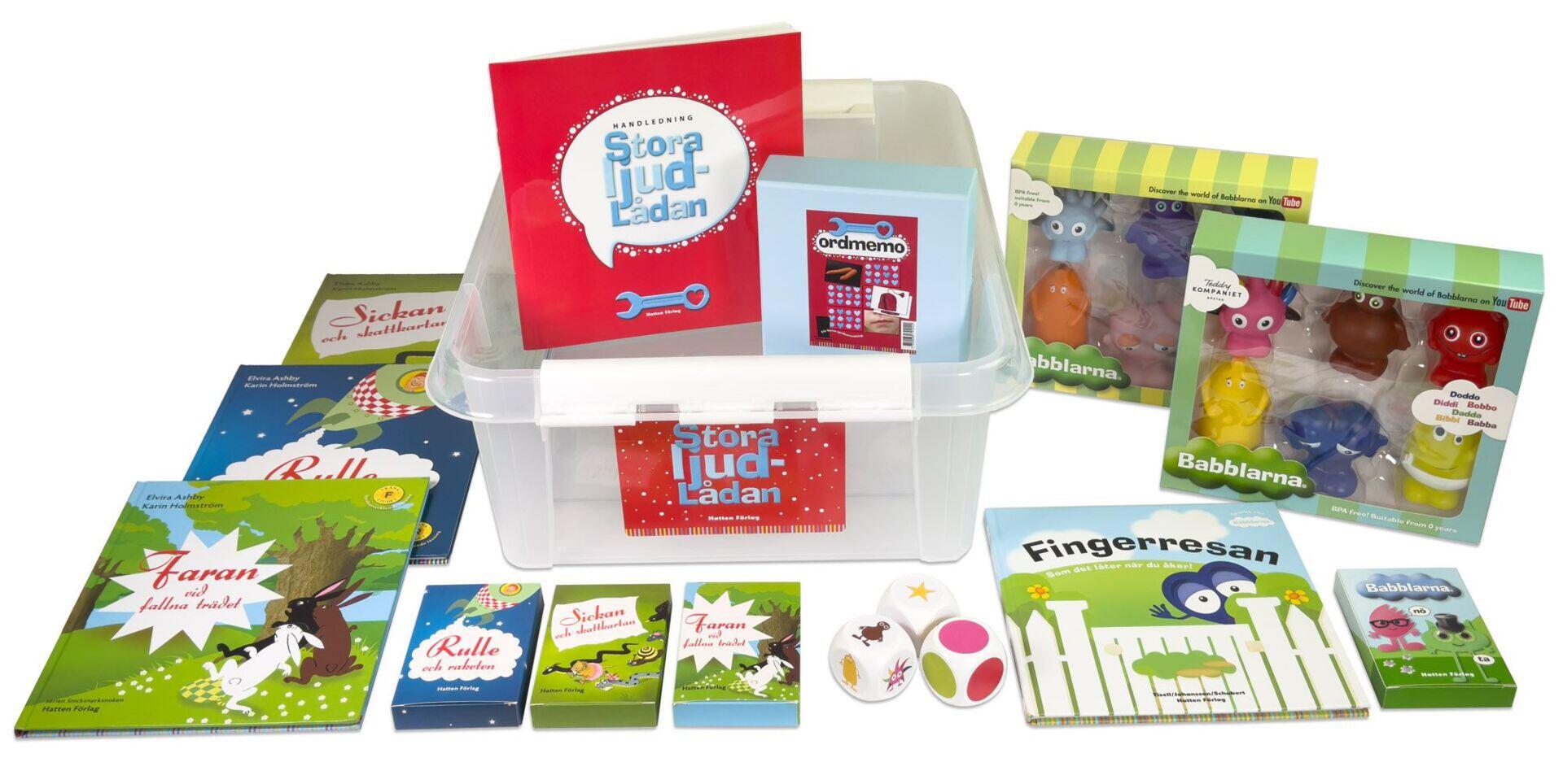 Lek och spela samtidigt som du tränar uttal! Stora språkpaketet med ljud innehåller bland annat boken Fingerresan, Babblarnafigurer och Babblarnas spelbok för träning av alla språkljud mellan himmel och jord. För ljud som brukar krångla lite extra finns även Snicksnacksnokens böcker och kortlekar, och handledningen är full av tips på lekar och spel för riktigt rolig uttalsträning. Innehåller boken Fingerresan inkl. pappfigurer ur Babblarna i Konsonantdalen, Babblarna plastfigurer, både BD-set och GS-mix, Babblarnas spelbok, boken Sickan och skattkartan inkl. kortlek, boken Faran vid fallna trädet inkl. kortlek, boken Rulle och raketen inkl. kortlek, Ordmemo och handledning. Allt är förpackat i en praktisk plastbox.