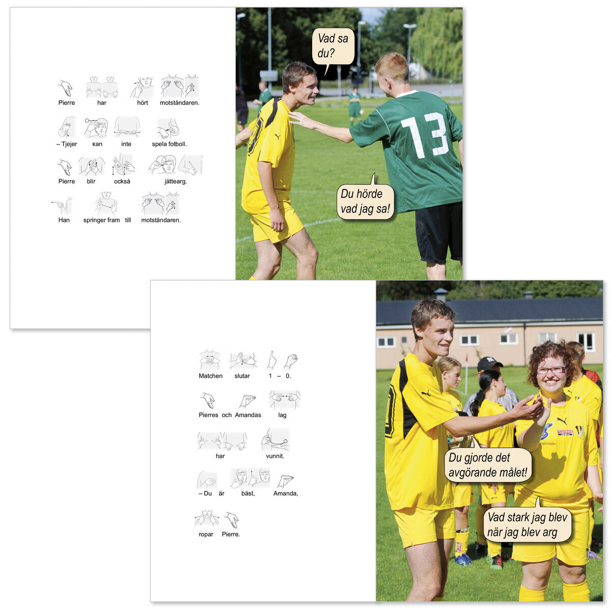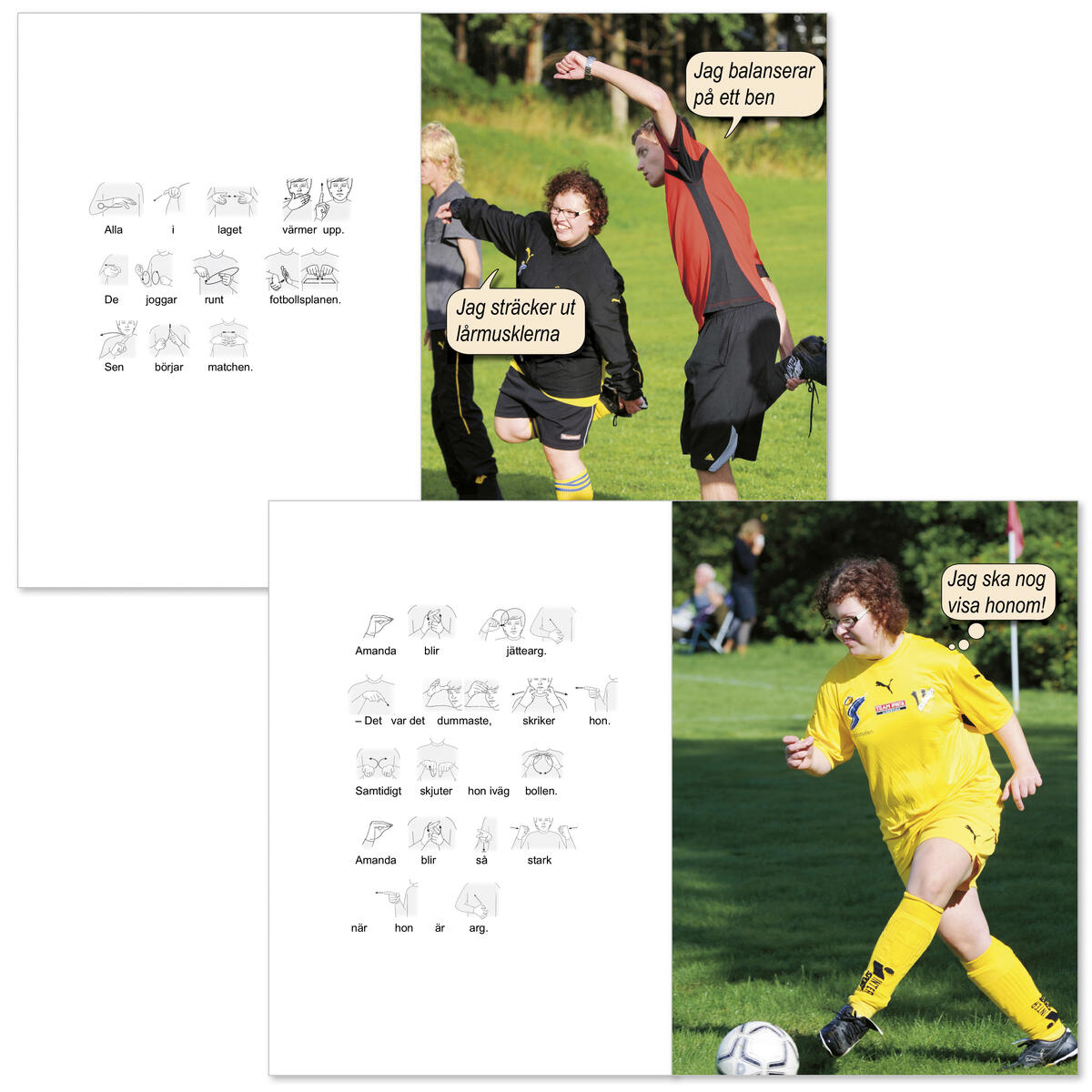 Amanda och Pierre spelar fotboll i samma lag. En dag spelar de match och Amanda blir retad av en motståndare. Pierre blir arg och försvarar sin kompis. Men vad händer då? Tjejer kan spela fotboll precis lika bra som killar. Det tycker i alla fall Amanda och Pierre men tydligen håller inte alla med. Men får man verkligen säga vad man vill på en fotbollsplan? Annika Rehn som skrivit de populära böckerna om Ebba är nu tillbaka med Skills, en bokserie om ungdomar för ungdomar. Till sin hjälp har hon även denna gång fotograf Göran Billeson. Med materialet Skills vill de locka till kommunikation. Skills omfattar fyra böcker, korta filmer och två kortmaterial. Allt handlar om fritidsaktiviteter och innehållet ger många tillfällen till samtal och tankar och förhoppningen är också att inspirera ungdomar till ett eget berättande. Hela materialet har stöd av tecken. Boken är i storlek A4, 28 sidor.