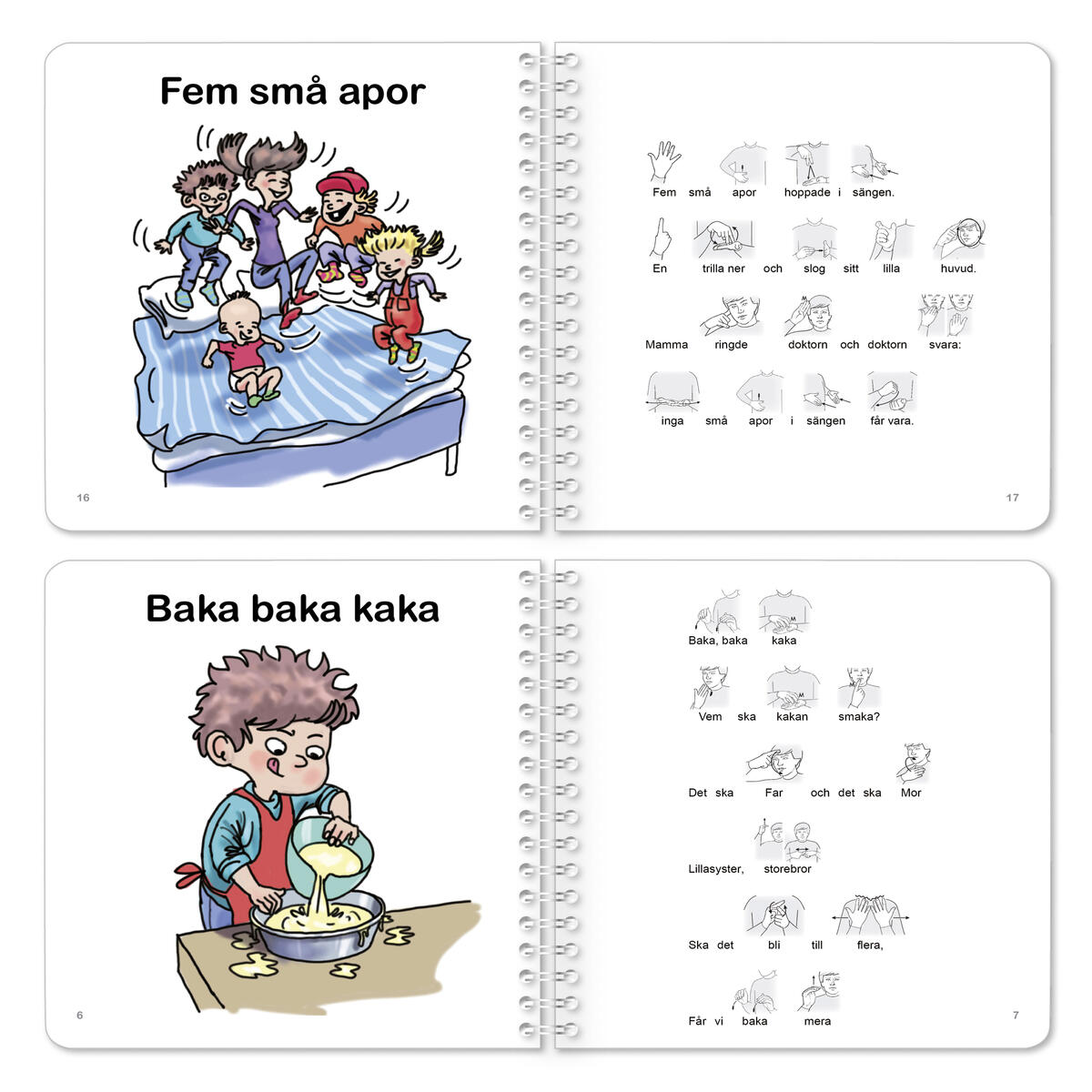 Klassiska rim och ramsor med roliga bilder på barnen i Olle&Mias värld. Självklart med teckenillustrationer - som alltid i Olle&Mias böcker. Innehåller 30 lite längre ramsor med tecken.