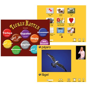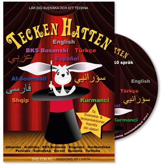Dataprogrammet TeckenHatten översatt till tio språk. Lär dig både svenska och Tecken som AKK framför datorn! Lätt och roligt och passande för både barn och vuxna som har ett annat modersmål än svenska. DVD som innehåller: albanska, arabiska, BKS (bosniska), engelska, nordkurdiska, persiska, somaliska, sorani, spanska och turkiska. Språk-TeckenHatten innehåller 1 500 ord och varje ord visas med ljud (svenska + valfritt språk), bild, text och med tydlig teckenvideo (på svenska). För PC, Windows XP/Vista/7/10. Går att styra med kontakter.