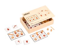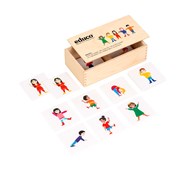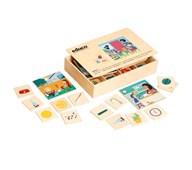 Barnen får här träning i att förklara och sätta ord på sina tankar. Meningen är att skapa situationer där de måste kommunicera med varandra genom att förklara bilden de har framför sig. T.ex. "Jag letar efter en brun apa som har en gul boll framför sig". Upp till fyra deltagare. PVC-fri. Från 4 år.