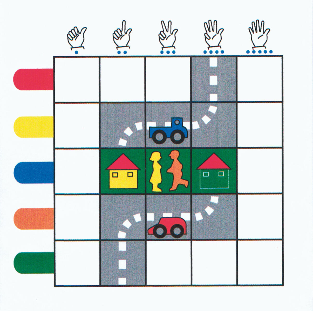 Ett spel där barnen tränar sig i att beskriva för sin kompis hur de ska göra, eller att själva utföra en uppgift efter instruktioner. Här arbetar vi både med språket och med programmering. PVC-fri. Från 4 år.