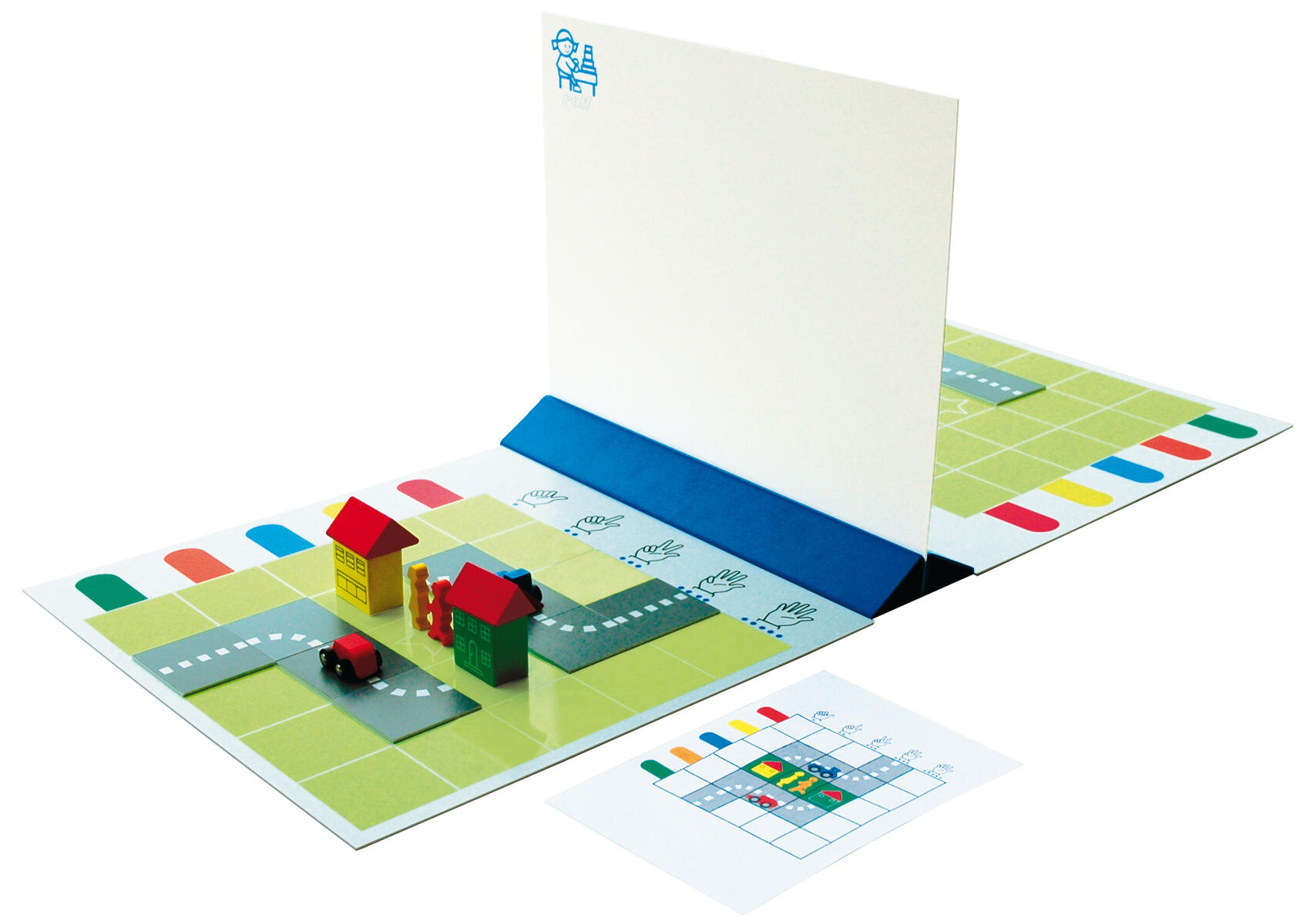 Ett pedagogiskt spel där barnen tränar observationsförmåga, logiskt tänkande och rumslig medvetenhet genom att sortera i storlek och placera efter begreppen på, över, mellan, större etc. Uppgifterna på aktivitetskorten har stigande svårighetsgrad. Innehåller 2 magnetkort, 24 små magnetiska bildbrickor, 6 instruktionsbrickor och engelsk handledning. PVC-fri. Lagom för 2 barn från ca 3 år och uppåt.