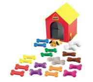 Hjälp Ruff att finna alla gömda hundben i sitt hus. Ett taktilt känselspel där hundbenen har olika struktur och barnen ska försöka finna matchande par genom att känna efter med handen i huset. Innehåller 20 stycken hundben, en hund och ett hus. Mått: hus 12x17 cm och hundben 5 cm. Av ABS och TPE. PVC-fri. Från 3 år.