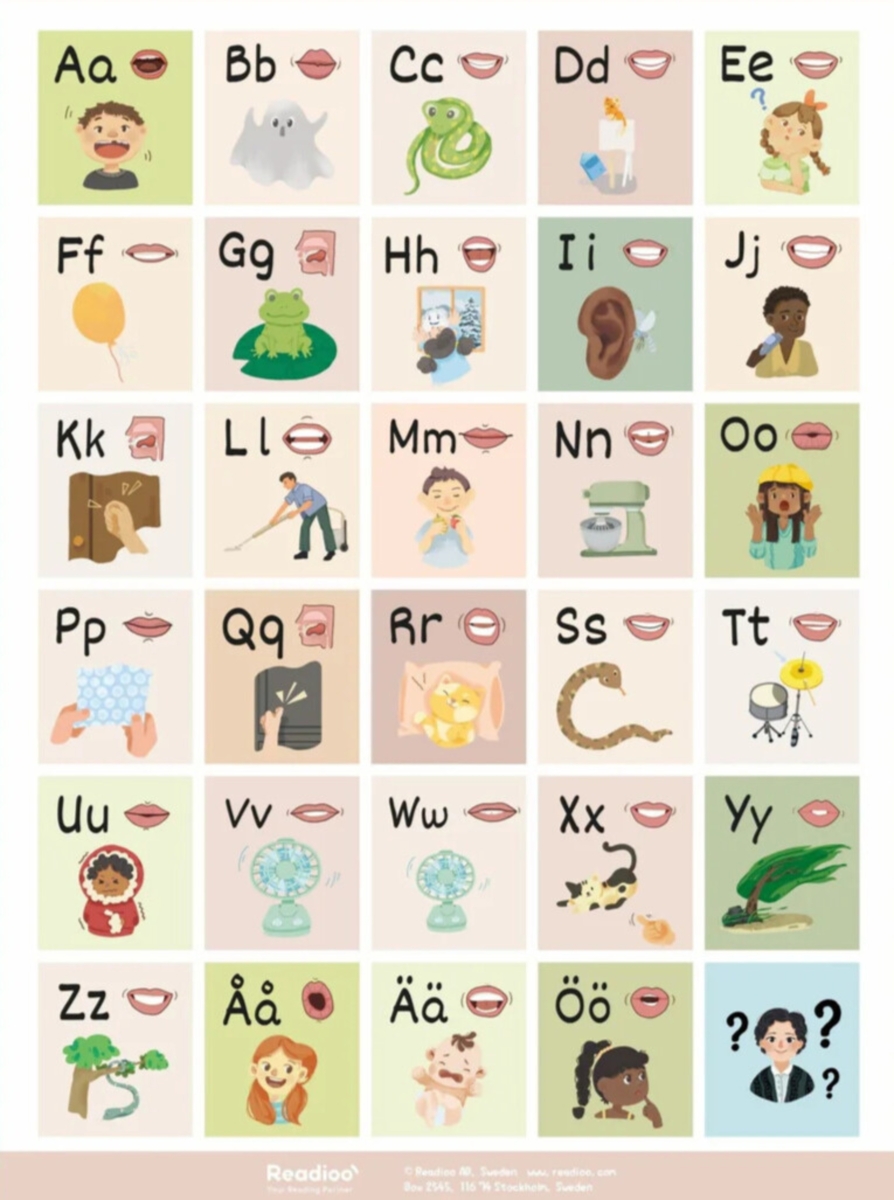 Med denna bokstavsposter får barn lära sig kopplingen mellan bokstäver och deras ljud. Produkten är utvecklad i samarbete med en logoped. Med Readioos läspenna (152269) väcks postern till liv. Dutta och lyssna på hur bokstäverna låter. Mått: 30x40 cm.