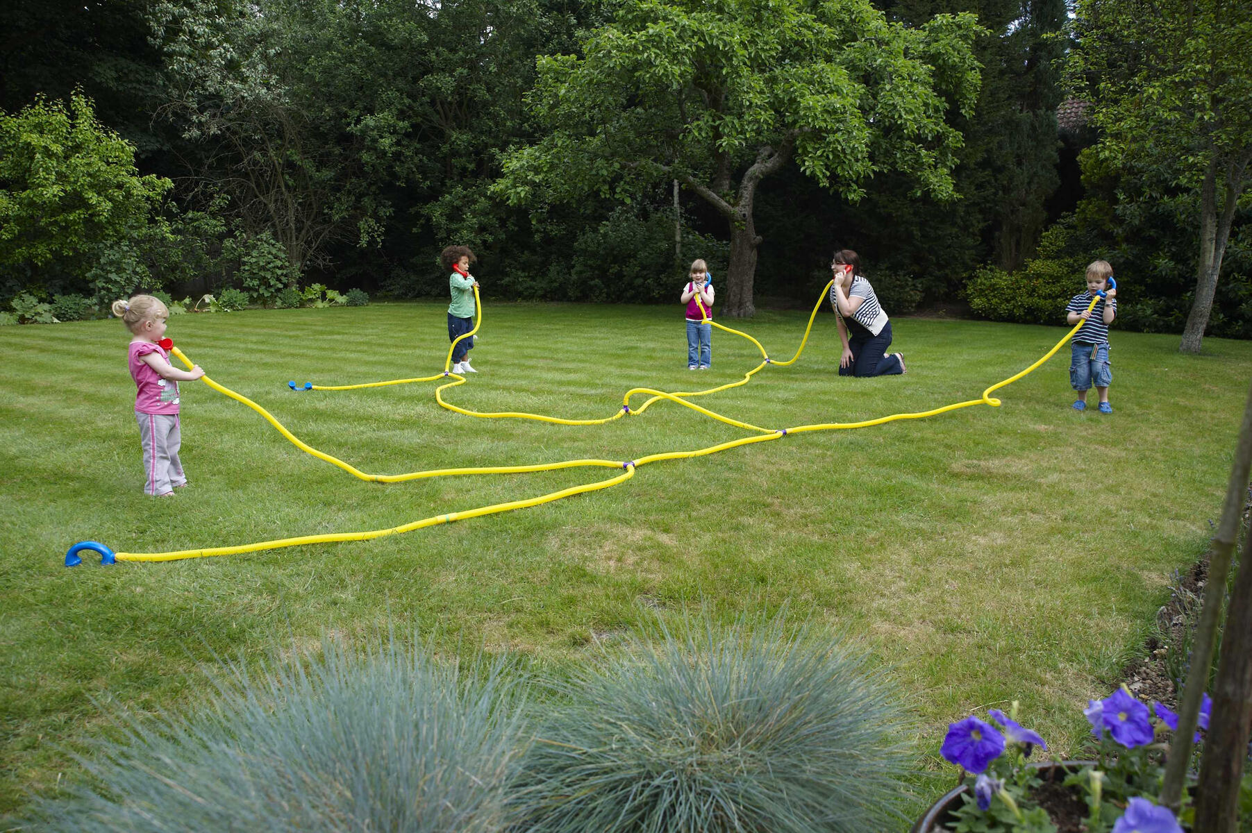Gör roliga kommunikationsövningar med plaströr och lurar. Kan användas i alla utbildningssammanhang, både inomhus och utomhus, för att utveckla barns kommunikation, personliga och sociala färdigheter. De olika uppsättningarna kan användas för att kommunicera över ett litet avstånd mellan rum, över en uteplats eller mellan inom- och utomhusmiljöer. Stark plastkonstruktion. Kan lätt tvättas ren efter användning. Innehåll: 3 m plaströr och 2 lurar. Från 3 år.