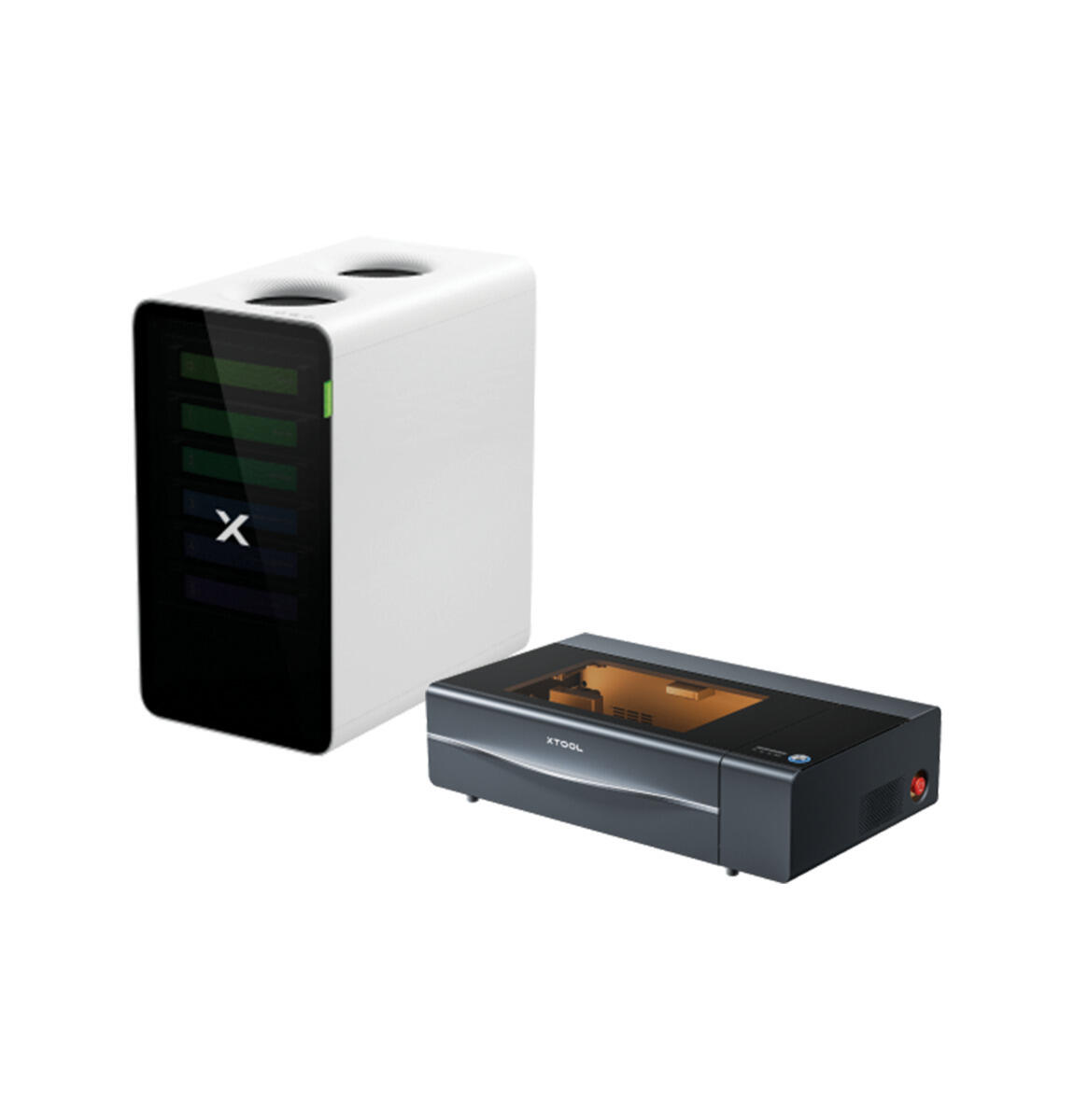1 st/fp. Tillbehör till artikel 142504. Högeffektiv luftrenare utvecklad för laserskärnings- och graveringsmiljöer som säkerställer ren och säker luft med en filtreringseffektivitet på 99,99 %. Med avancerad SuperCyclone-teknik, ett 6-lagers filtreringssystem och auto-tune-funktion anpassar sig renaren automatiskt efter material och arbetsförhållanden. Systemet erbjuder realtidsövervakning, tyst drift på endast 55 dB samt möjlighet till synkronisering med xTool-lasermaskiner för automatisk start och avstängning. SuperCyclone-filtret är tvättbart och återanvändbart. Mått: 290x491x542 mm. Vikt: 20,7 kg. Robust konstruktion i metall och plast med flerskiktsfilter bestående av SuperCyclone-filter, förfilter, medeleffektivt filter, aktivt kolskikt, ultratätt kolnät och högeffektivt filter.
