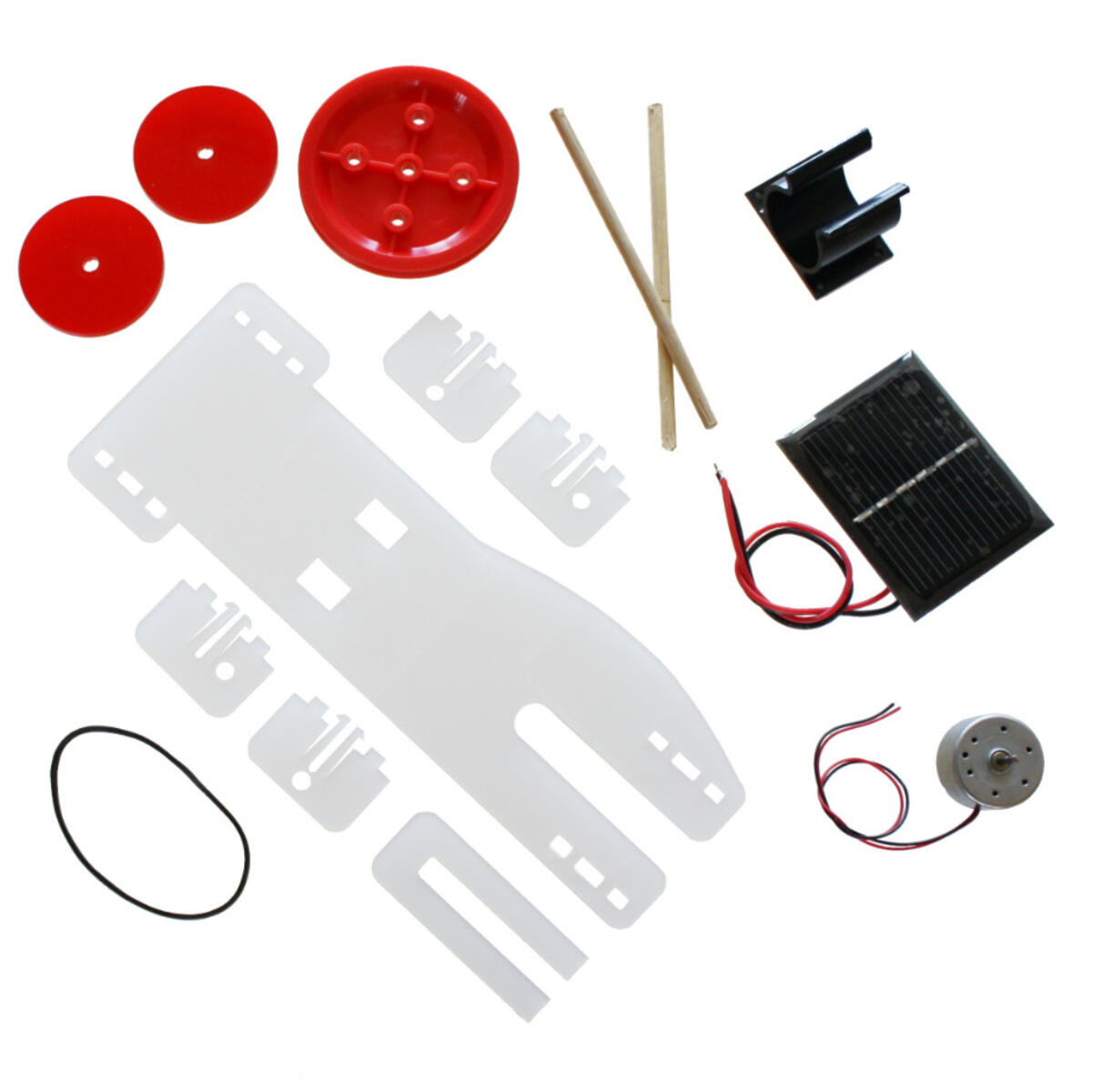 Visa hur man utnyttjar solens energi för att producera kraft på ett enkelt sätt med denna buggy. Enkel konstruktion som fungerar i direkt solljus alternativt med en halogenlampa som simulerar solsken. Innehåll: 1 solarmotor med låg tröghet, 1820 RPM, 2 bakhjul, 2 remskivor, 1 monteringsklämma, 1 st 3 V 100 mA polykristallinsolcell, 2 dymlingar och 1 chassi. Kräver lödkolv, lödtenn och sandpapper, ingår ej.