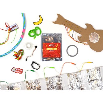 Ett tillbehör till Makey Makey med kreativa material som klämmor, aluminiumfolie, ledande tråd och ledande tyg samt Makey Makey-pennor. Innehåll: 1 ledande grafitpenna, 1 stålkula, 1 pennvässare, 20 mässingspappersfästen, 5 aluminiumfolie, 1 ledande tygfyrkant, 4 klämmor, 1 rulle med ledande tygtejp, 1 spole av ledande gänga, 1 tillfällig tryckknapp och 1 Makey Makey-klistermärke. Från 8 år.