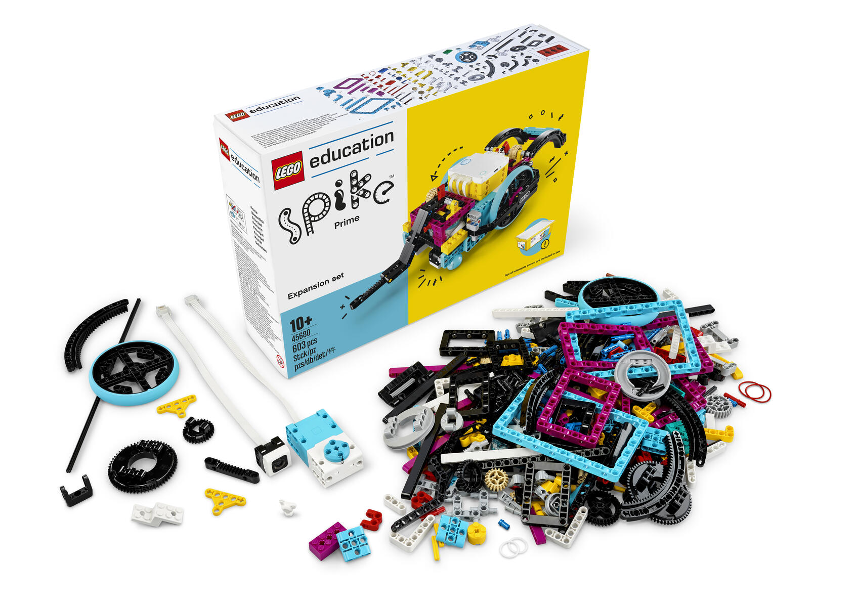 603 delar. Ge dig in i robottekniktävlingarnas spännande värld med LEGO® Education SPIKE™ Prime expansionsset. Ett komplement till SPIKE Prime Set (111971) med 603 delar som stora hjul, innerkuggkransar, en färgsensor och en stor vinkelmotor. Erbjuder över 10 h riktad undervisning i naturvetenskap, teknik, ingenjörsvetenskap, konst och matematik (förkortas STEAM på engelska) för elever på mellan- och högstadiet. Material: ABS. PVC-fri.