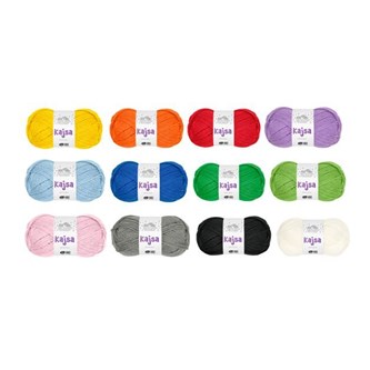 10 st x 50 g/set. Ett paket med 10 nystan i olika färger. 50 g/nystan. Ingår gul, orange, röd, ljusblå, blå, ljusgrön, grön, rosa, svart och vit. 100 % akryl. Stickor 8 mm. Masktäthet 12 m = 10 cm. Tvättråd: 40 ºC. Är OEKO-TEX®-certifierad, klass I (Standard 100). PVC-fri.