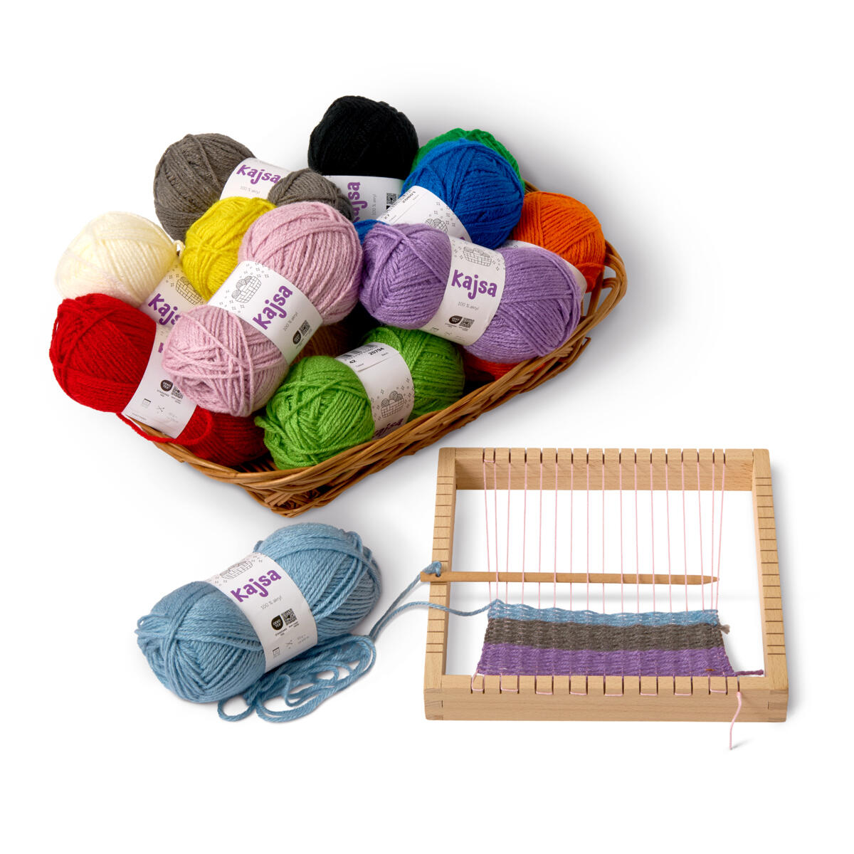 10 st x 50 g/set. Ett paket med 10 nystan i olika färger. 50 g/nystan. Ingår gul, orange, röd, ljusblå, blå, ljusgrön, grön, rosa, svart och vit. 100 % akryl. Stickor 8 mm. Masktäthet 12 m = 10 cm. Tvättråd: 40 ºC. Är OEKO-TEX®-certifierad, klass I (Standard 100). PVC-fri.
