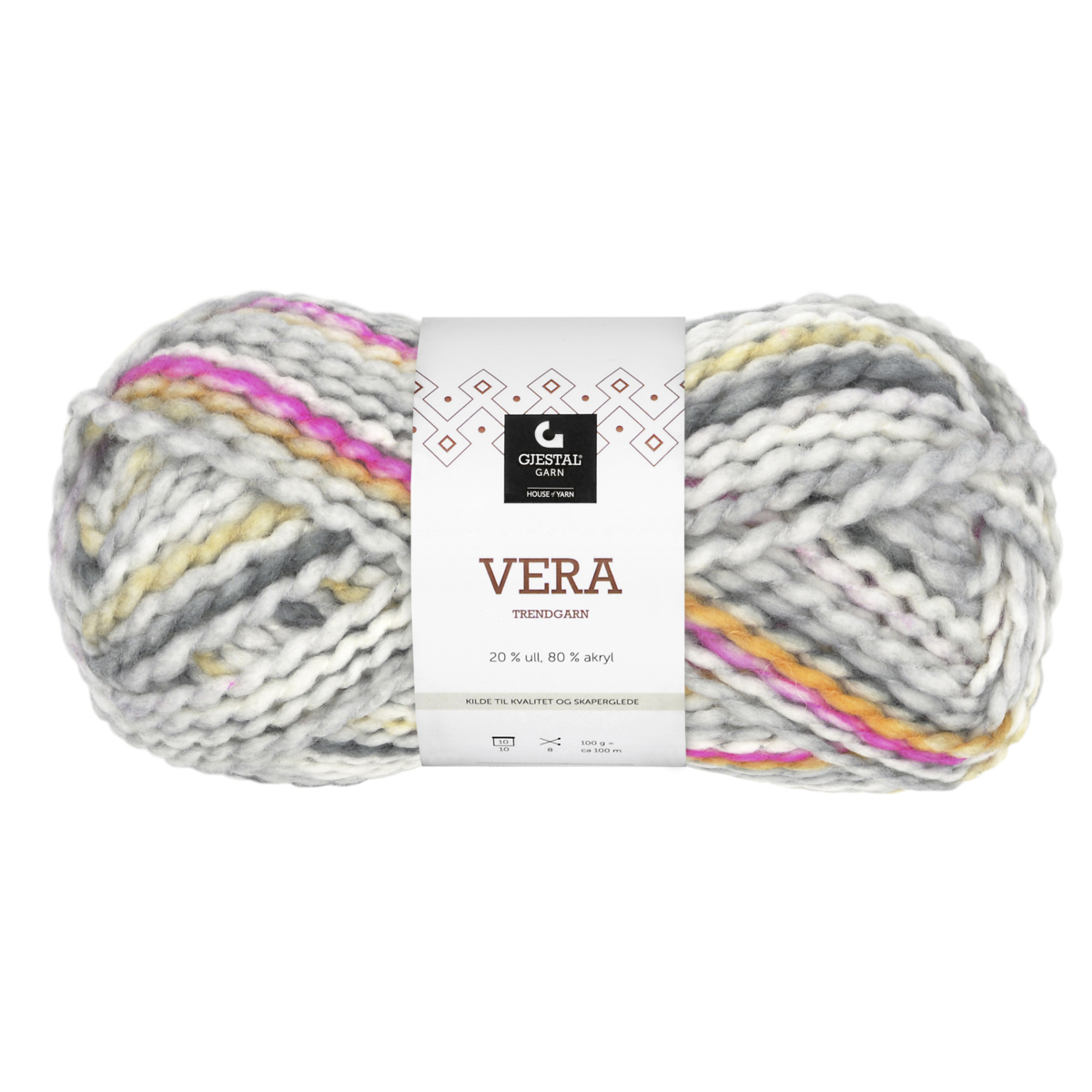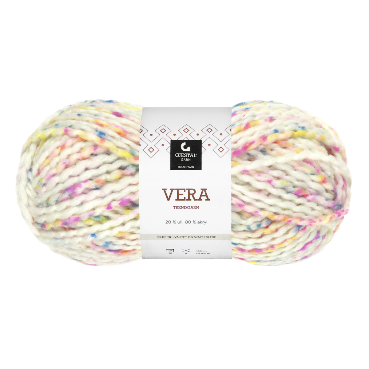 6 kg, 6 färger, 1 kg/färg. Turkos, cerise, orange, limegrön, ljuslila och gul. 50 g nystan. Tvättråd 30 °C. Stickor nr 7. Masktäthet 13 m = 10 cm. Ullråvaran kommer från ullproducenter som garanterar att mulesing inte får förekomma. Av 100% ren ny ull som är OEKO-TEX®-certifierad, klass I (Standard 100).