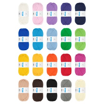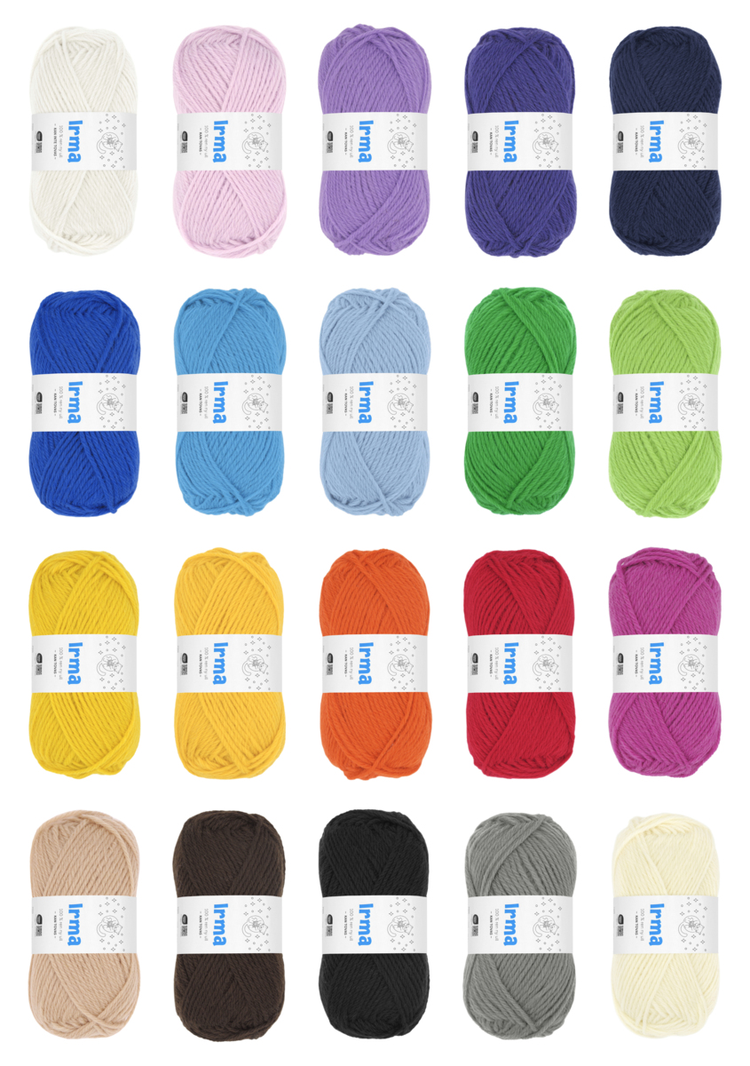 6 kg, 6 färger, 1 kg/färg. Gul, röd, blå, grön, oblekt och svart. 50 g nystan. Tvättråd 30 °C. Stickor nr 7. Masktäthet 13 m = 10 cm. Ullråvaran kommer från ullproducenter som garanterar att mulesing inte får förekomma. Av 100% ren ny ull som är OEKO-TEX®-certifierad, klass I (Standard 100).