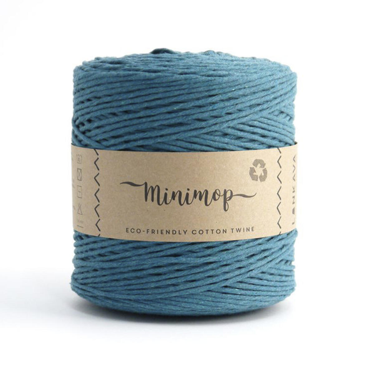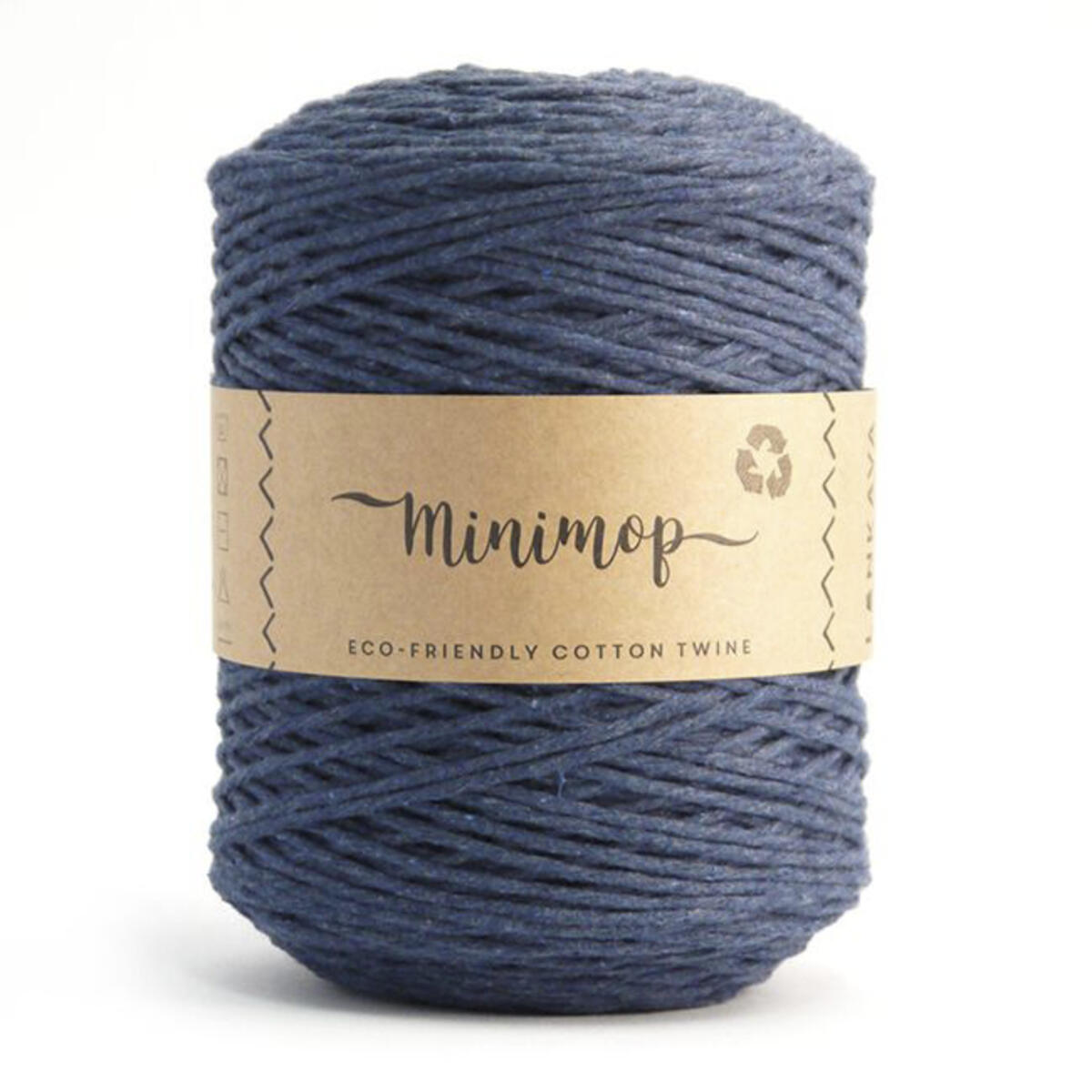 1 kg/nystan. Ca 355 m. Av 80 % återvunnen bomull, 20 % polyester. Stickor 10-20 mm. Virknål 6-7 mm. Garnets tjocklek är 5 mm. Fintvätt 30 grader. PVC-fri.