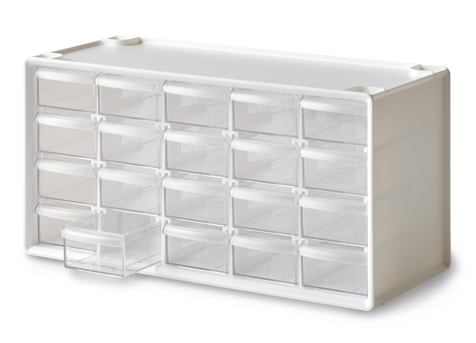 Praktisk förvaring som gör det lätt att hålla reda på de små sakerna. Perfekt för pyssel- och sytillbehör. Mått: B38xD15xH19 cm, fack B6xD13xH4 cm. Facken tas enkelt ut genom att vinkla något uppåt. Tillverkad av PS.