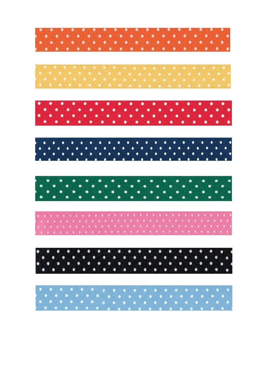 30 m/färg. Dekorationsband med fin glans. Kan användas för upphängning, dekoration, halsband m.m. Innehåller färgerna röd, gul, lila, blå, grön, rosa, vit, guld och silver. PVC-fri.