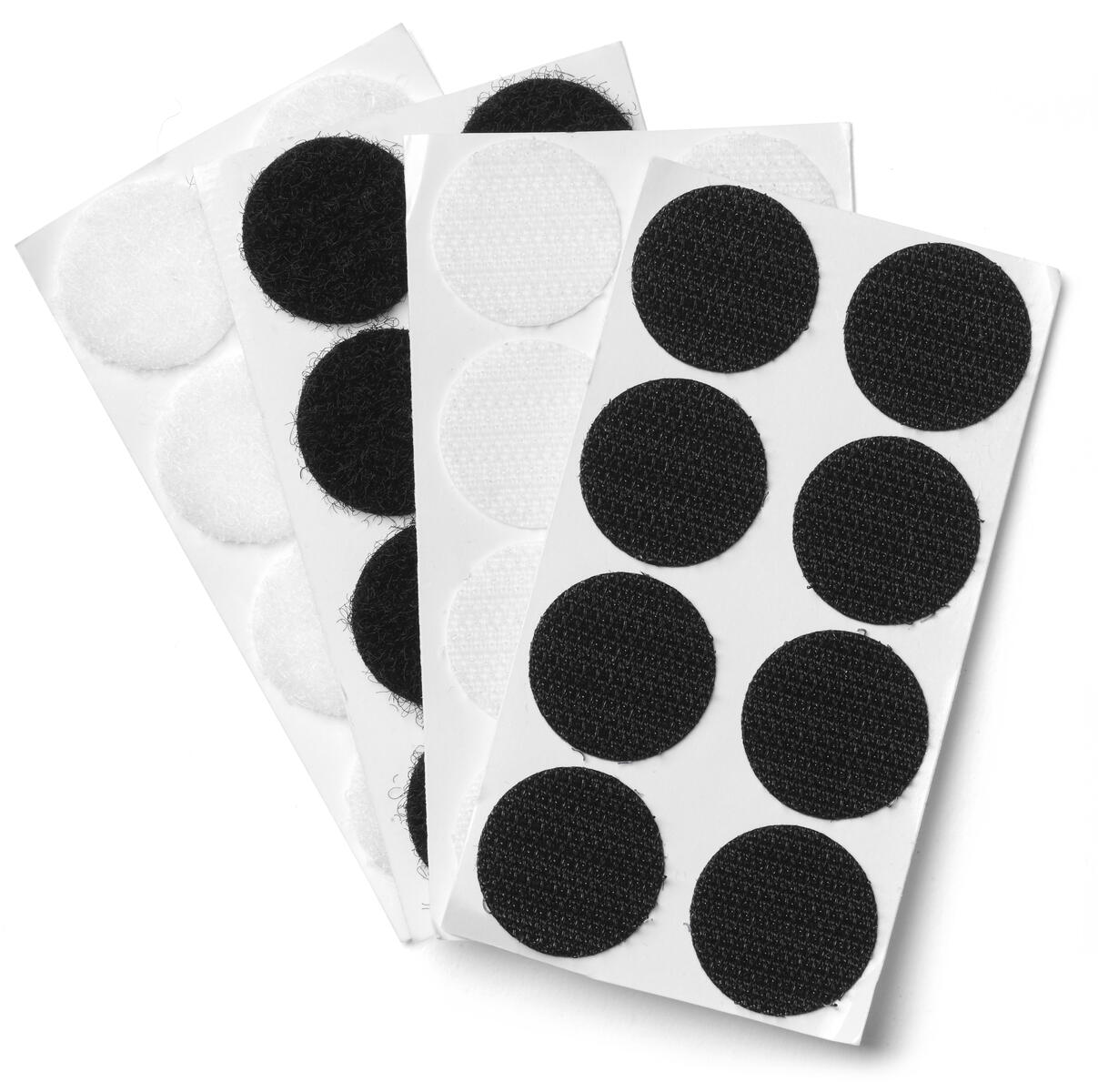 120 par/fp. Kardborrerondeller att sy eller klistra på. Svarta och vita i tre olika storlekar. Ingår både hårda och mjuka. ø 20, 33 och 45 mm.