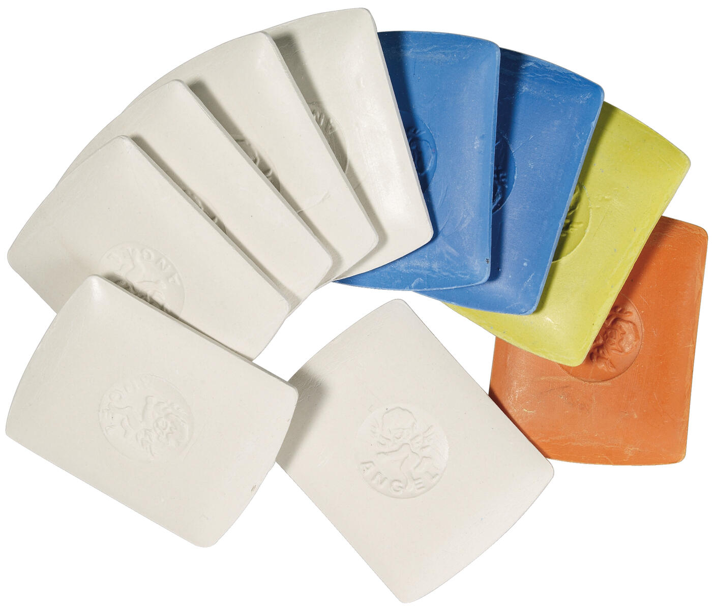 10 st/fp. Färgmix med 6 vita, 1 gul, 1 röd och 2 blå. Storlek 40x32 mm.
