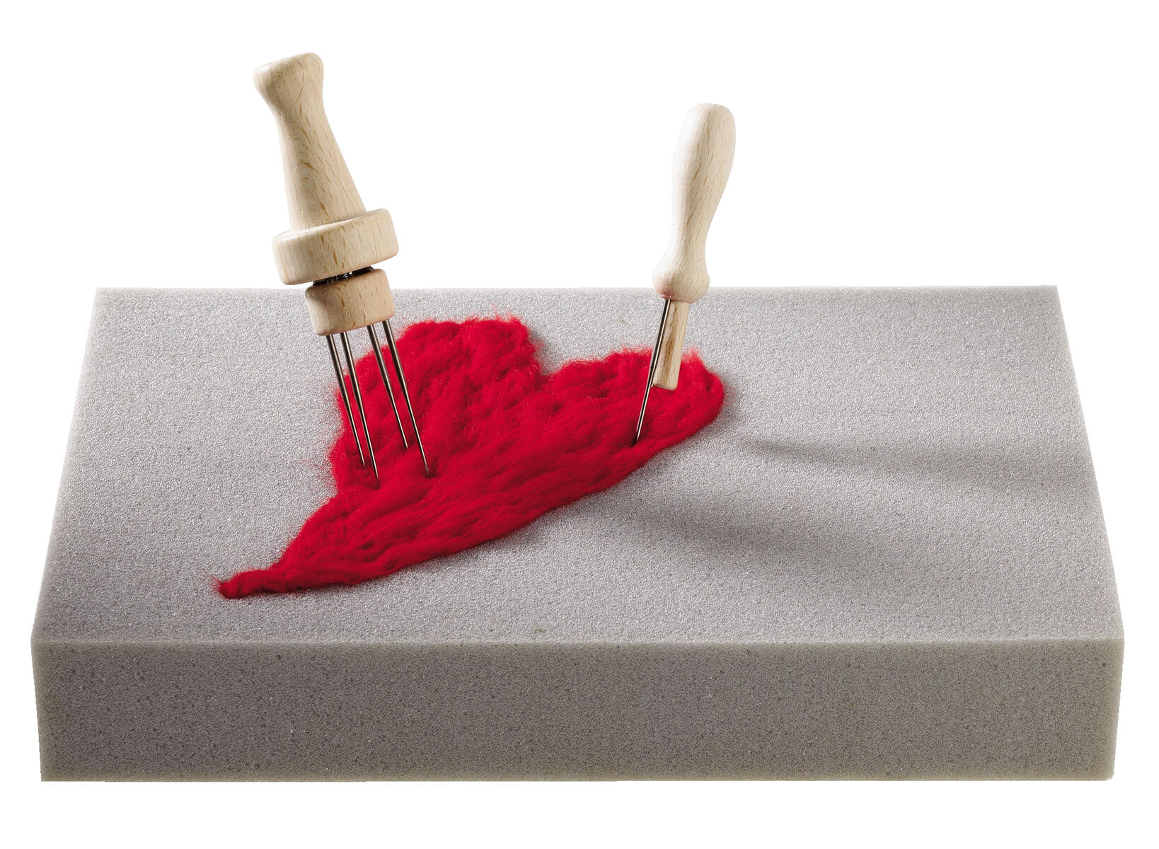 Platta av skumgummi att använda som underlag vid filtning med nål. Kan användas många gånger. Mått: 21,7x15,3x4 cm.