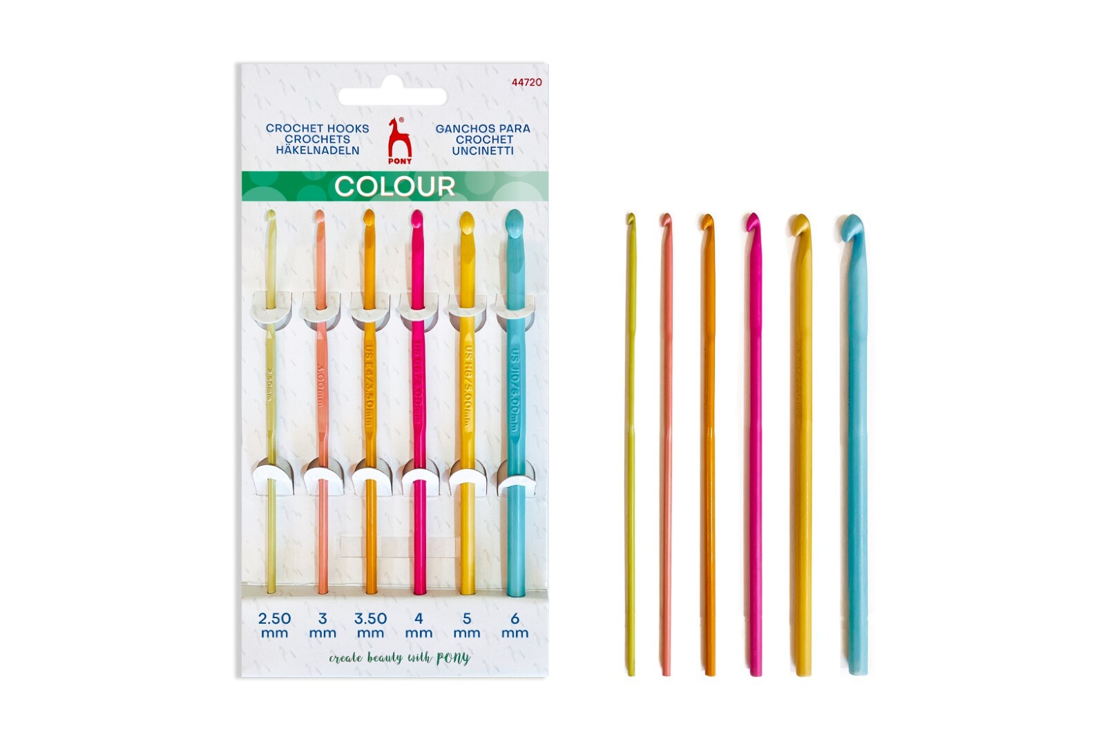 9 st/fp. Ergonomiskt greppvänliga virknålar. Mjukt och format grepp gör det enkelt att hålla kroken. Med handtag i olika färg för varje storlek. Innehåller storlek 2-6 mm. Nål av aluminium.