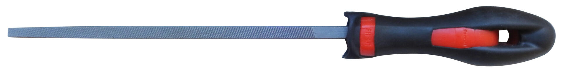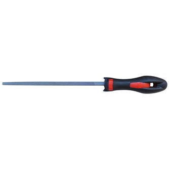 Fyrkantsfil med halvtrubbig avslutning och huggen runtom. Används för filning av spår, rektangulära hål och innerhörn samt vid verktygsjustering. Längd 200 mm.
