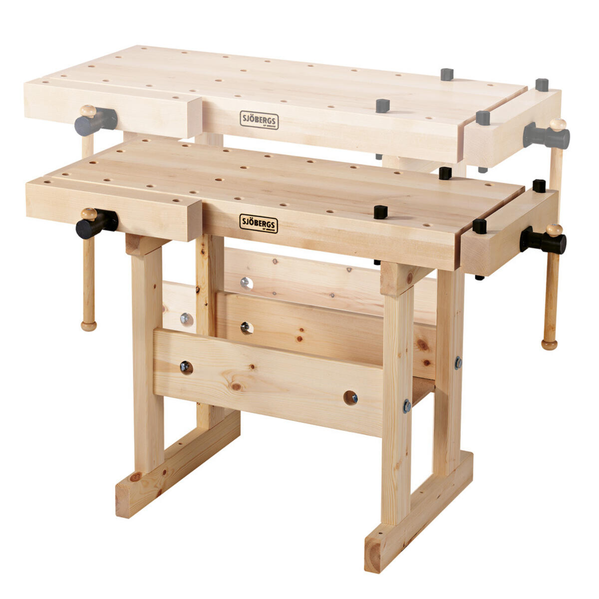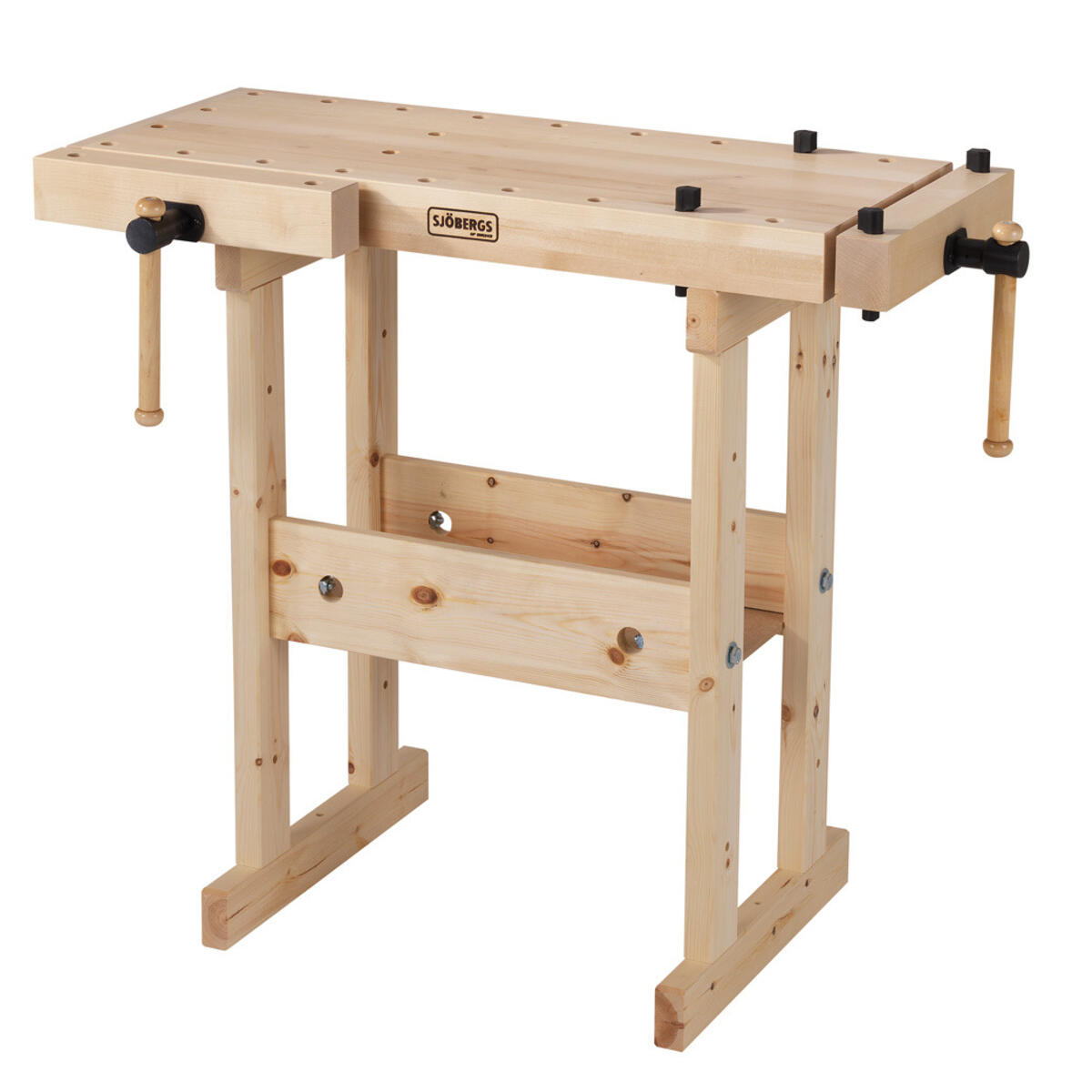Slöjdbänk i massiv klarlackad bok. Medföljer: 1 framtång, 2 skyddsbackar 43x6 cm, 2 skyddsbackar 12x8 cm, 1 bänkspännare och 2 bänkhakar. Skivan har måtten L107xH6 cm. Totalmått: L117xB40,5xH85 cm. Bänk måste förankras i golv.