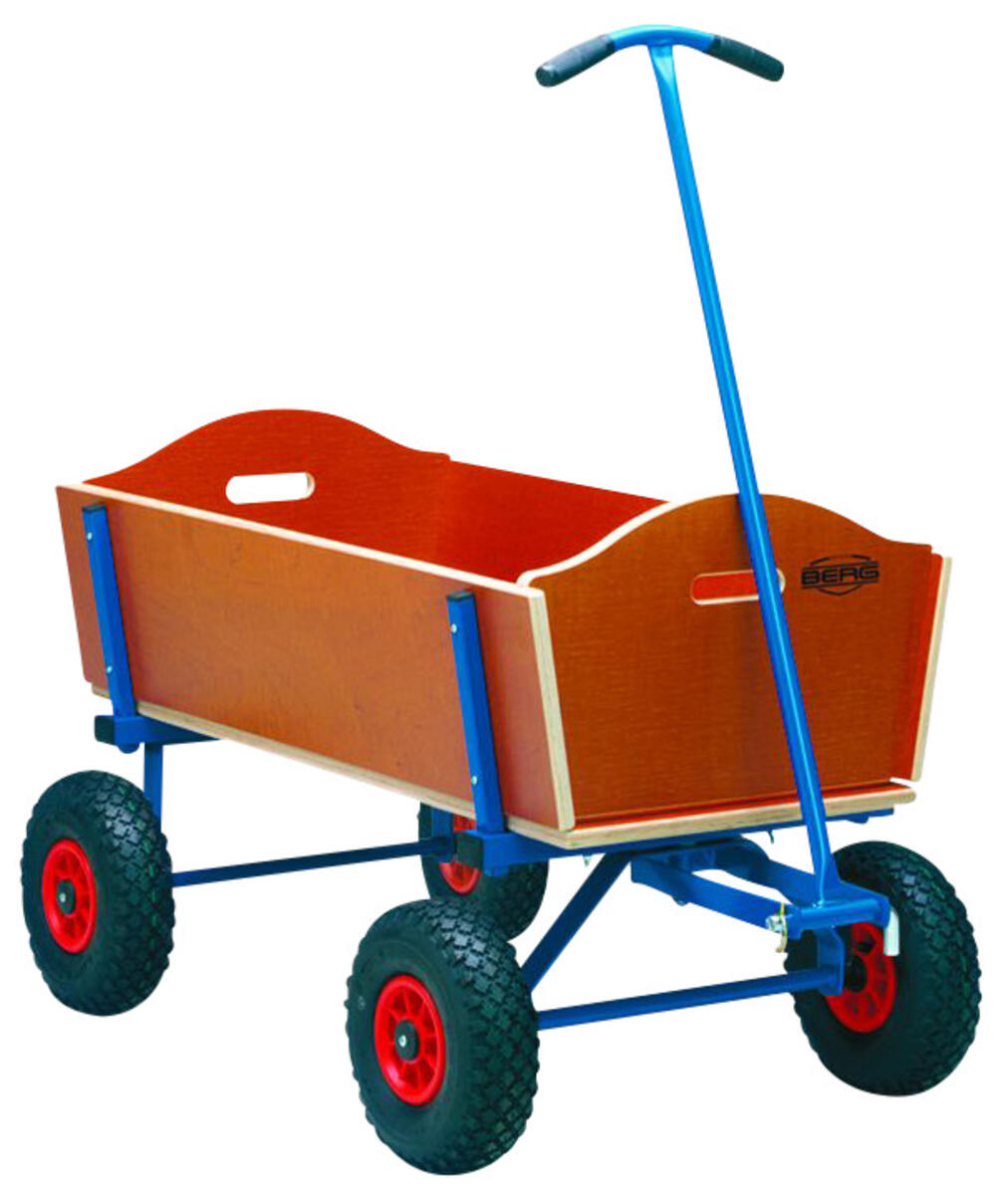 En hjälpreda när man behöver ha saker med sig ut på tur (inte avsedd för att köra barn i). Innerskydd, regnskydd och en liten metallbricka medföljer. Handtaget går att koppla loss. Försedd med luftgummihjul. Mått: 113x51x56 cm. Flaket är 90,5x48 cm. Maxvikt: 350 kg. Av stål, PE och polyester.