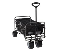 En hjälpreda när man behöver ha saker med sig ut på tur (inte avsedd för att köra barn i). Innerskydd, regnskydd och en liten metallbricka medföljer. Handtaget går att koppla loss. Försedd med luftgummihjul. Mått: 113x51x56 cm. Flaket är 90,5x48 cm. Maxvikt: 350 kg. Av stål, PE och polyester.