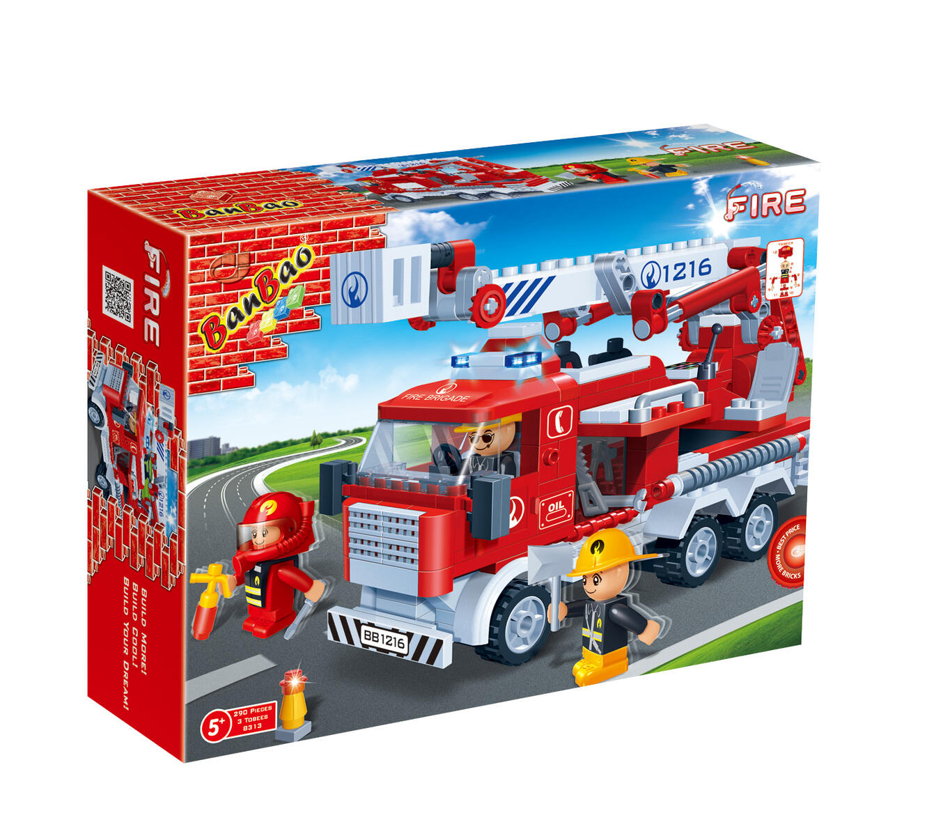 290 delar. Denna coola brandbil har alla nödvändiga verktyg för att släcka en brand och föra alla människor till säkerhet. 3 lekfigurer ingår. Främjar samspel, logiskt tänkande och finmotorik. Passar med andra fabrikat. Av ABS. PVC-fri. Från 5 år.